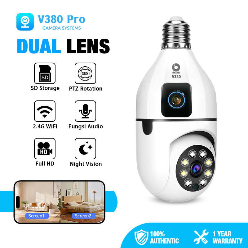 YAMIYA V380 Pro Dual Lens CCTV Kamera 1080P 360° Panoramic WiFi Connect To HP Night Vision Security Ip Cam