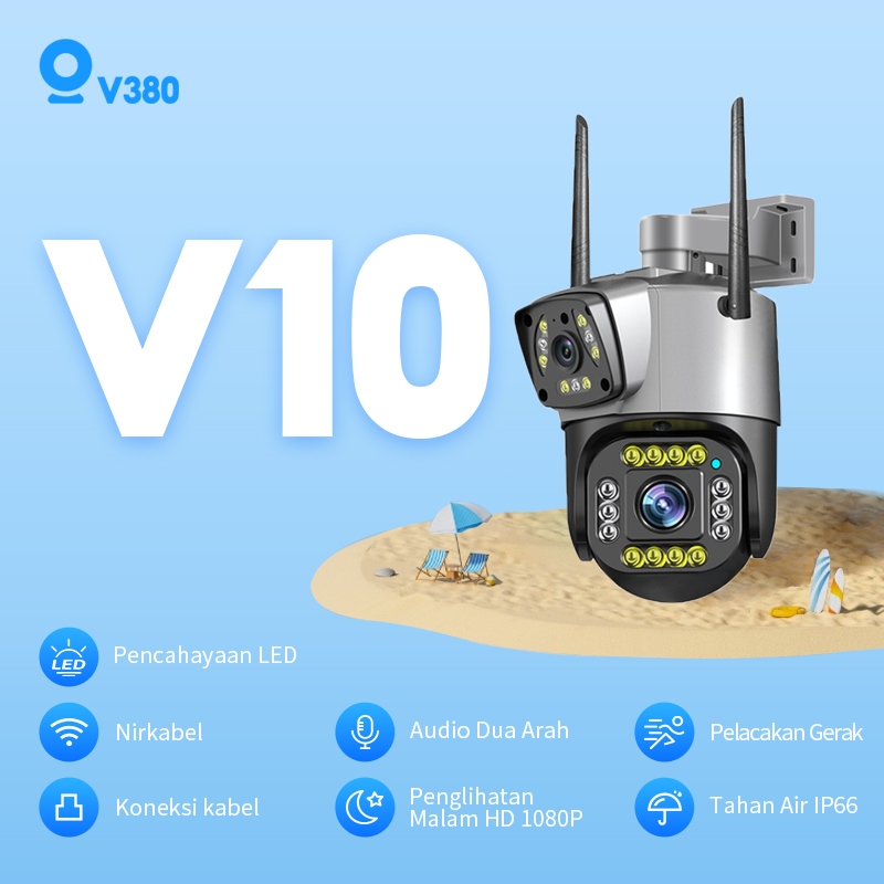 V380 V10 CCTV Outdoor Camera HD Wi-Fi Tahan Air Kamera keamanan Lensa Ganda Pelacakan Gerak