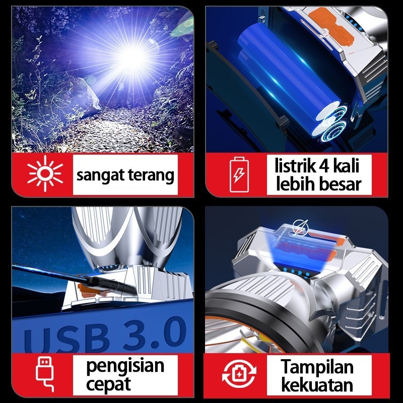 Headlamp LED 500W Penerangan Terus Menerus Selama 8 H Senter Super Terang Lampu Depan Luar Yang Kuat Lampu Depan Tahan Air Sensor Gerak Senter Berkemah Senter Kepala
