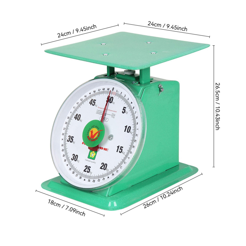 50Kg Timbangan Manual Jarum Vietnam Kapasitas Spring Dial Scale Besi Plat Tebal Datar Rata Meja