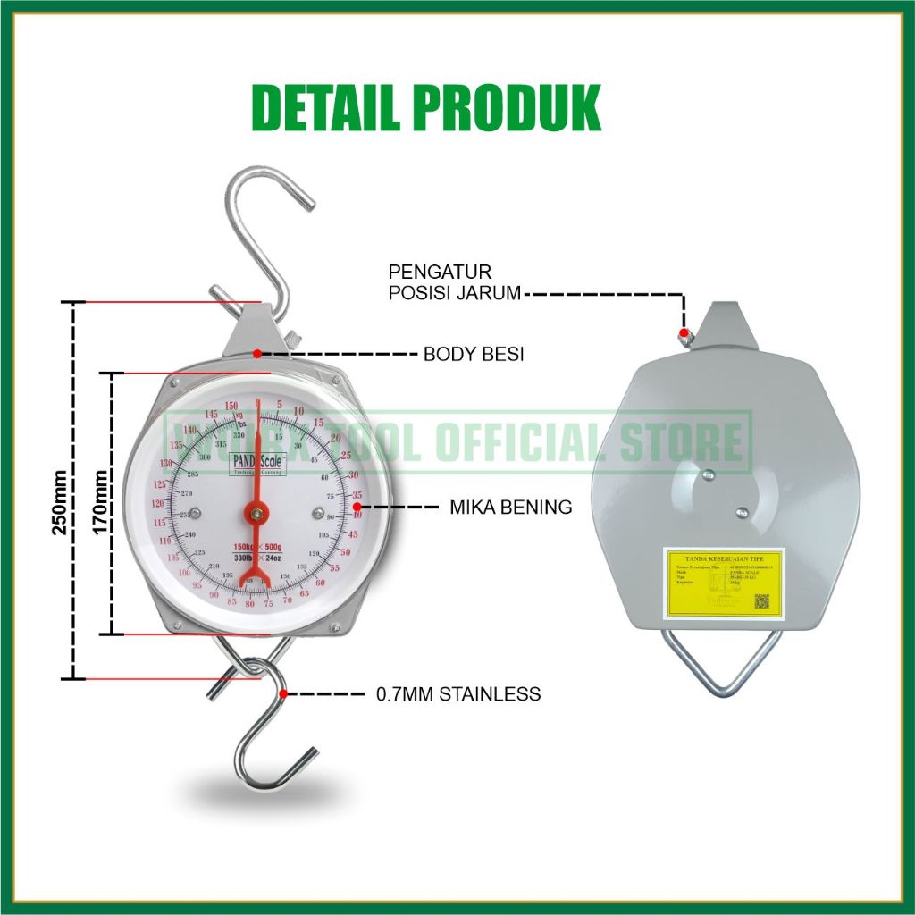 PANDA SCALE Timbangan Gantung Timbangan Jarum Manual Timbangan Ayam Buah Sayur Daging 25kg 50kg 100kg 150kg
