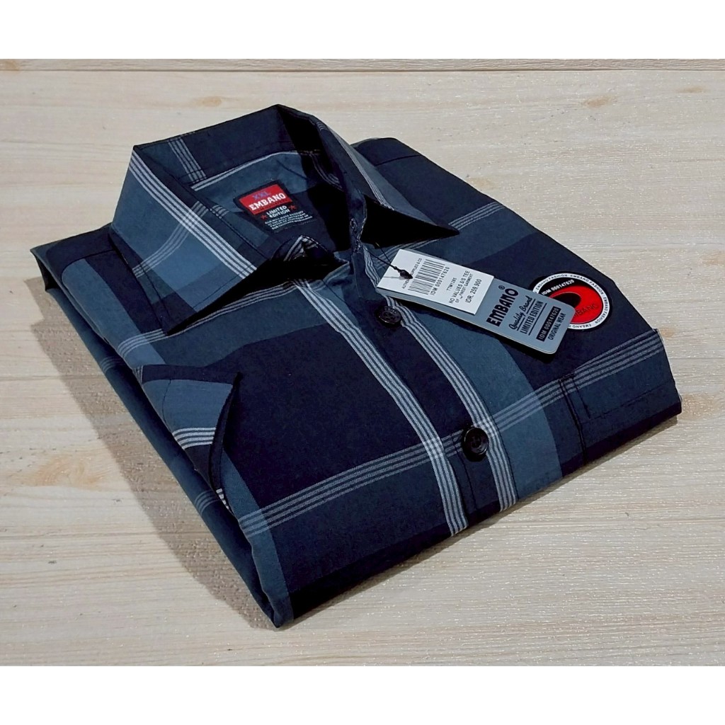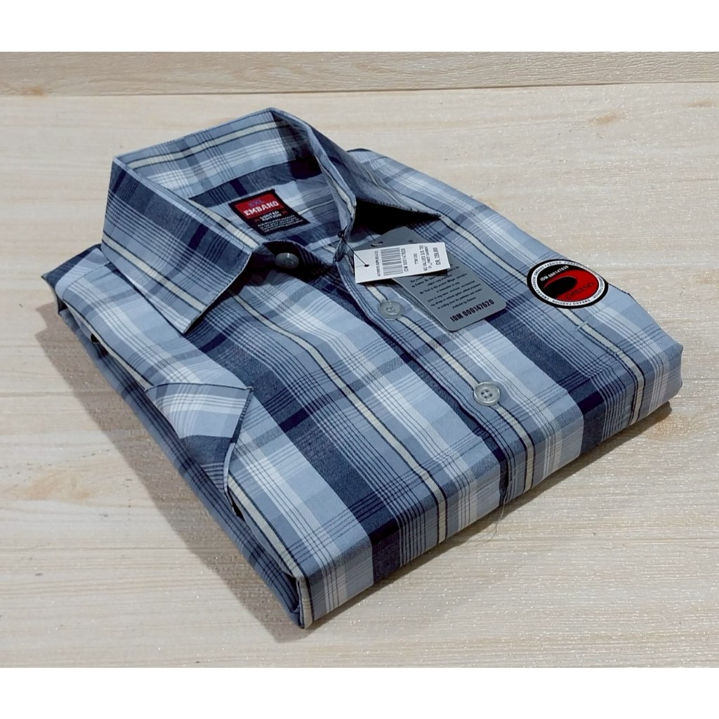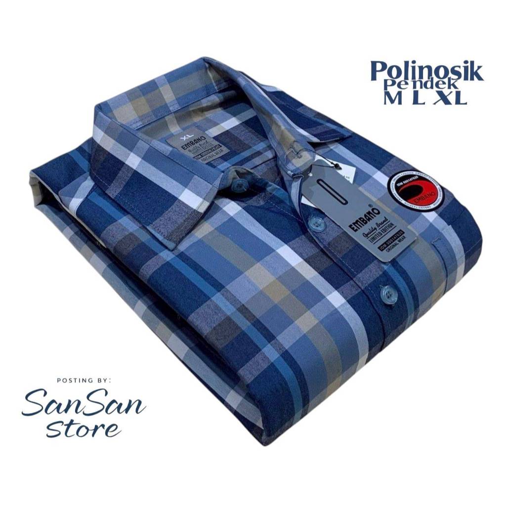 Baju Kemeja Kerah Pria Lengan Pendek Bahan Katun Polinosik Motif Garis Kotak Size Standar M L Xl New