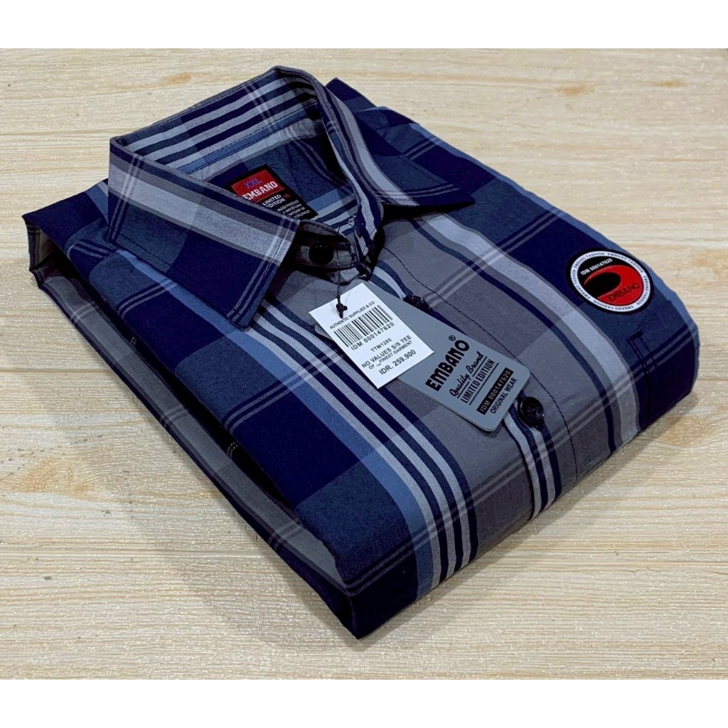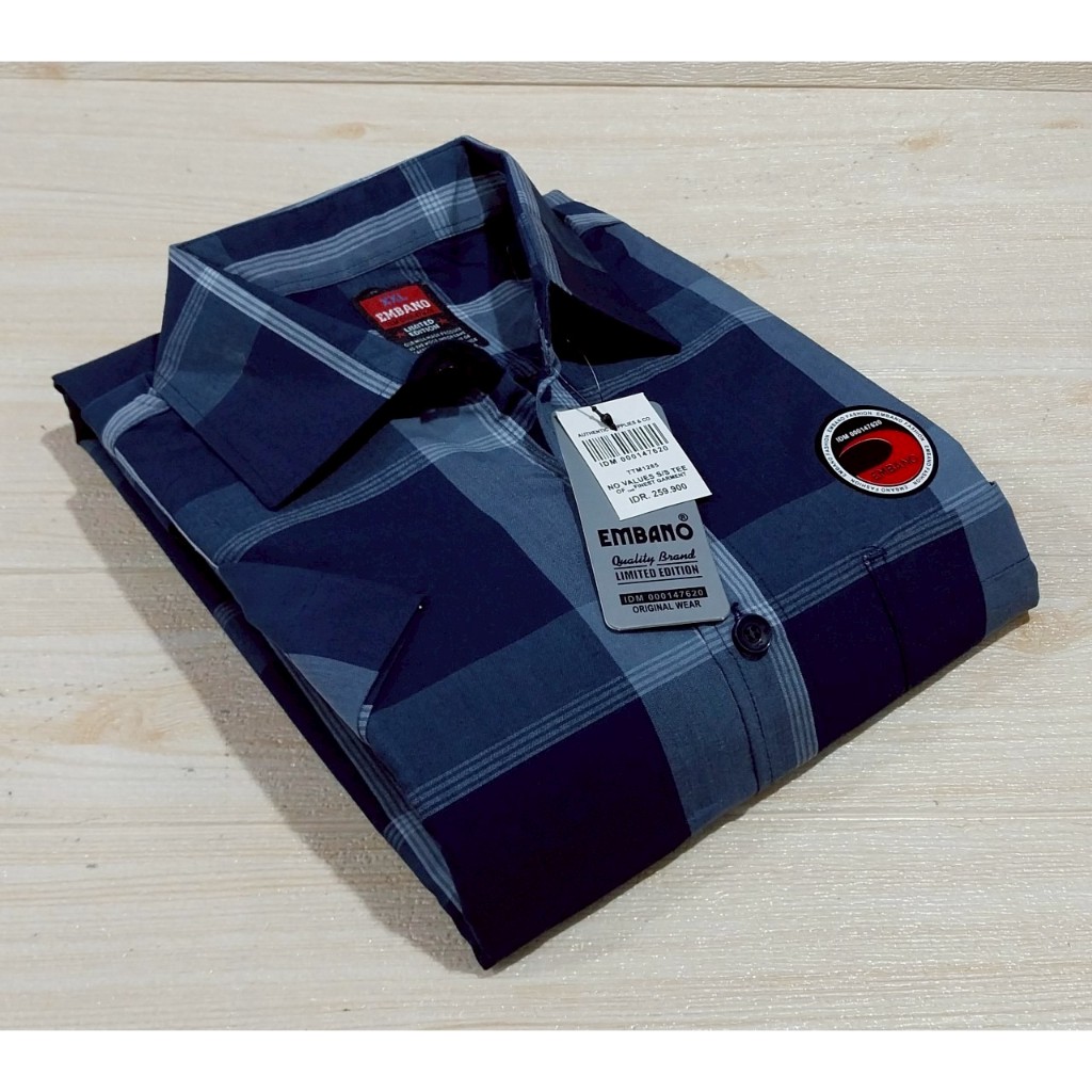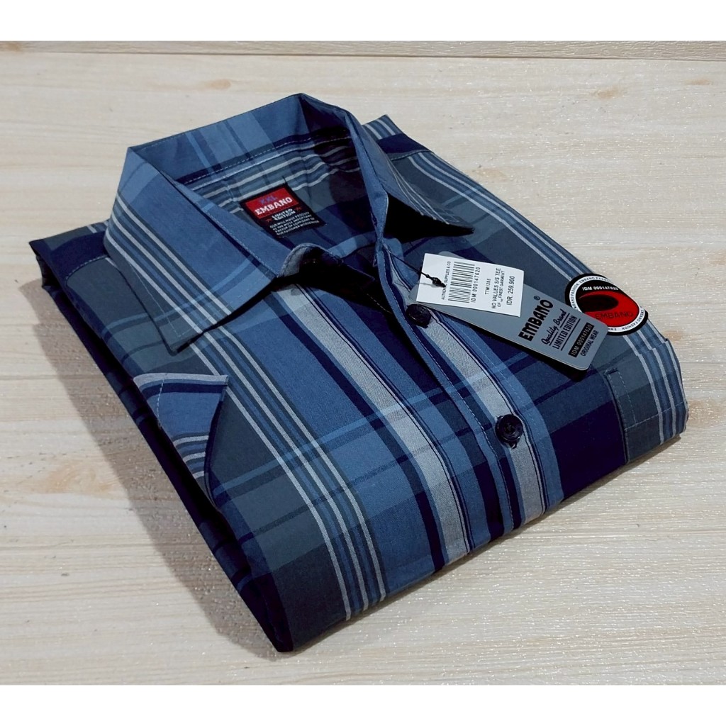 Baju Kemeja Kerah Pria Lengan Pendek Bahan Katun Polinosik Motif Garis Kotak Size Standar M L Xl New