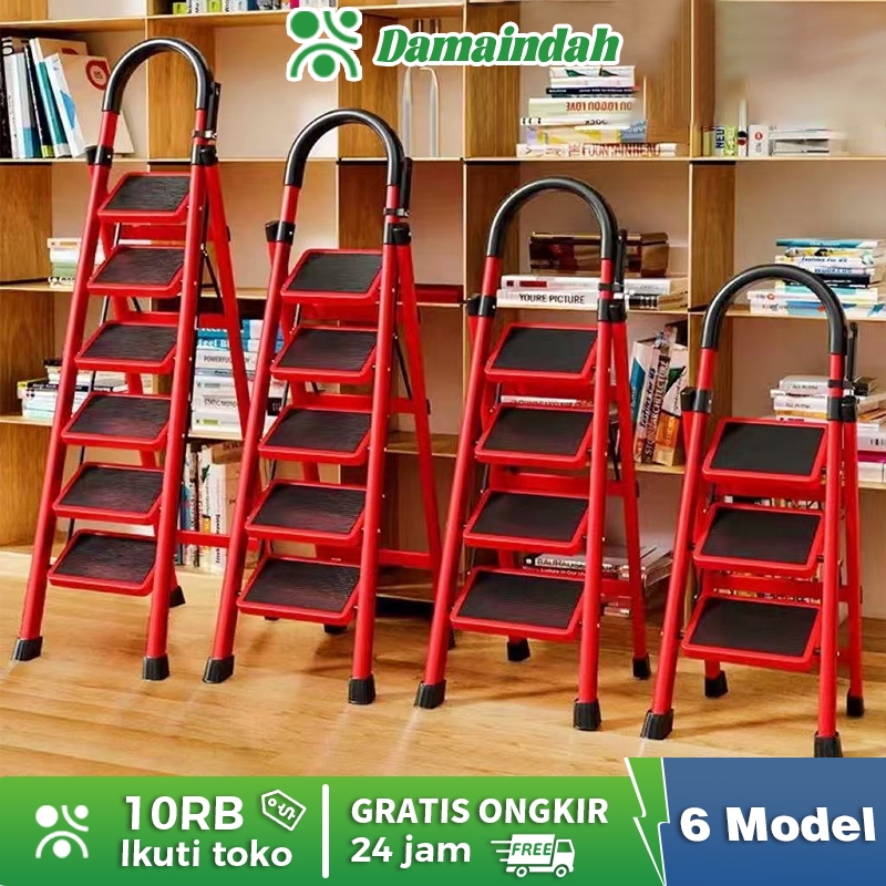Damaindah Tangga Rumah Lipat Tangga Besi Lipat 3/4/5/6/7/8 Step Household Steel Ladder/ Tangga Lipat Aluminium 4 Step Premium Ladder