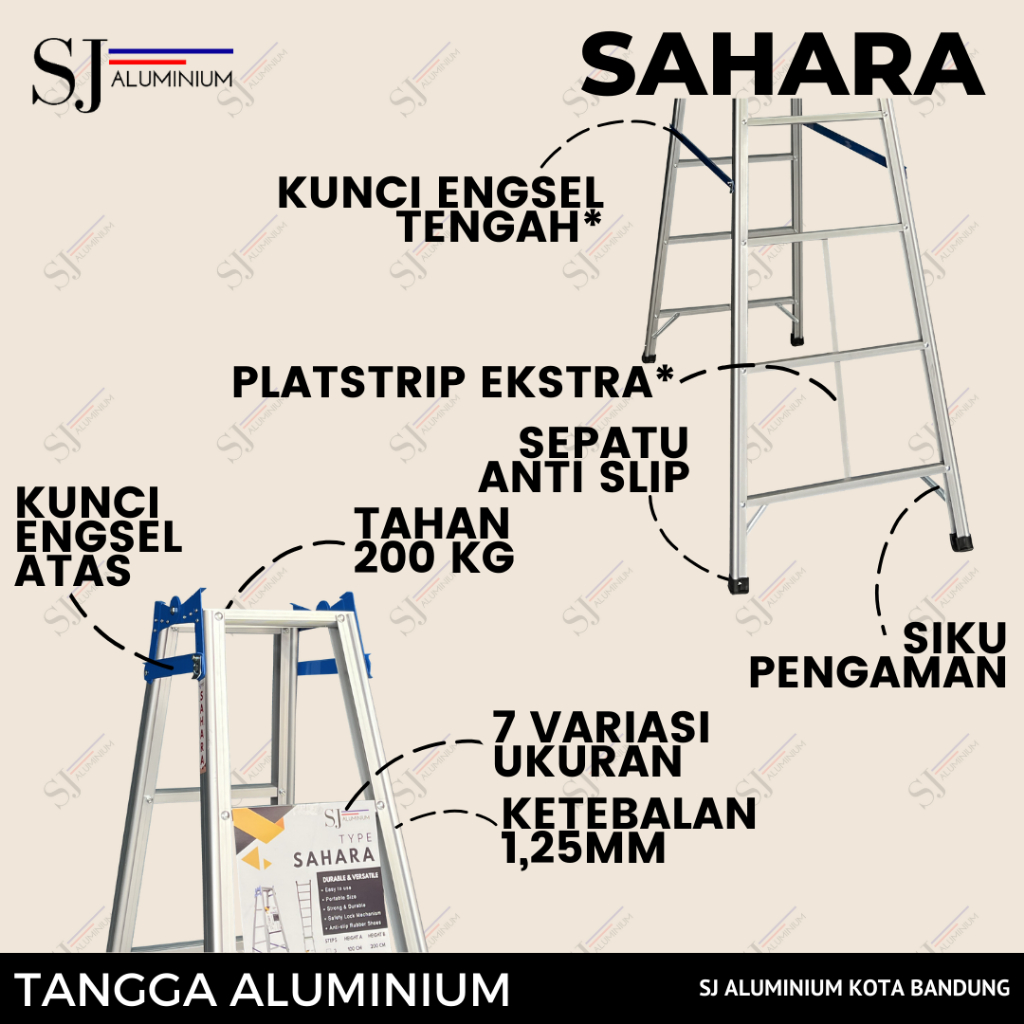 SAHARA - Tangga Aluminium Lipat Multifungsi / Aluminium Ladder Tahan Beban 200 KG