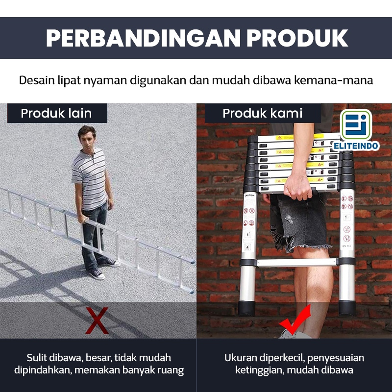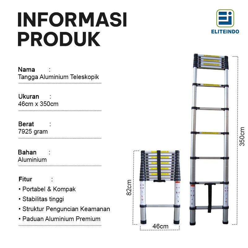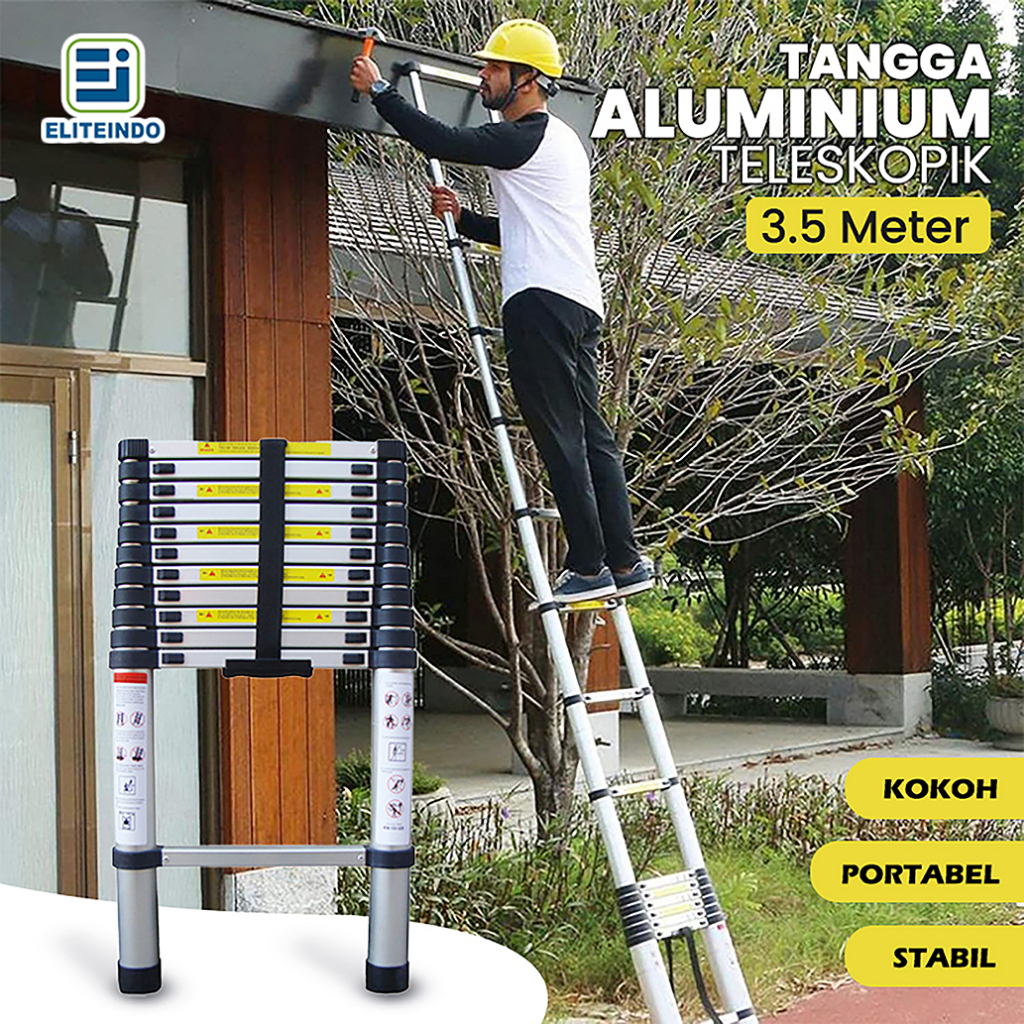 ELITEINDO Tangga Lipat Teleskopik Paduan Aluminium 3,5m/Tangga Lurus Lipat Portabel Satu Sisi - T3C1