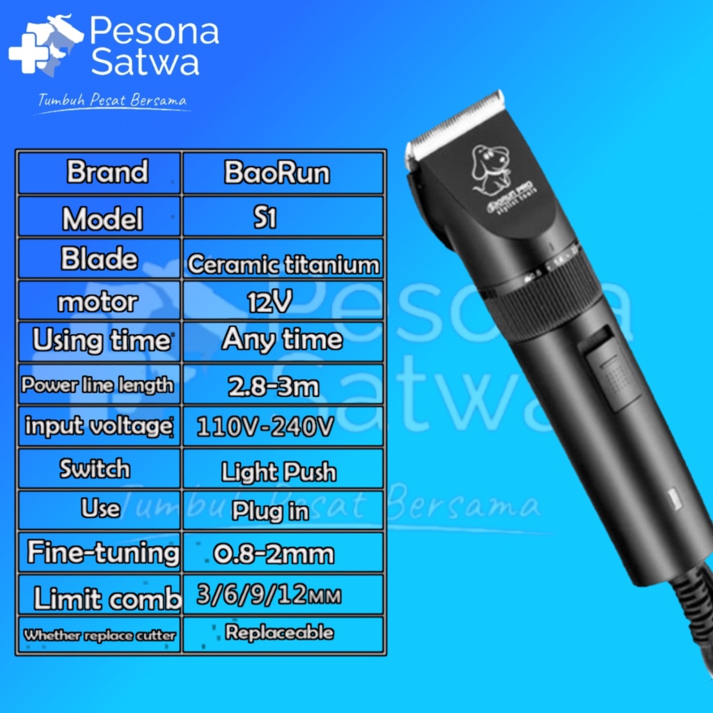 Baorun S1 Original Alat Cukur Elektrik Bulu Hewan -Kucing Kambing Domba Anjing Dll-