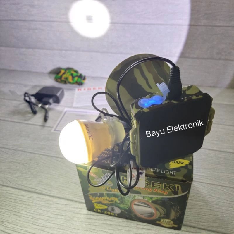 Senter Kepala LED Super Terang Kiseki Loreng King 100 Watt CK-299 Cahaya