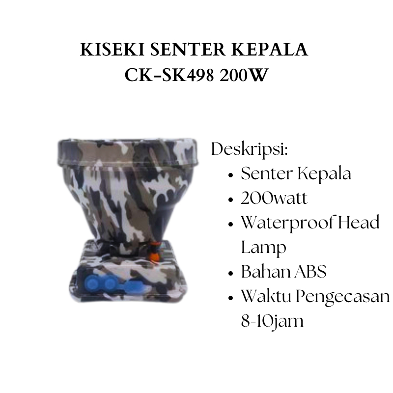 Kiseki Senter Kepala CK-SK 498 Senter Kepala Cahaya Putih 200Watt Waterproof Headlamp