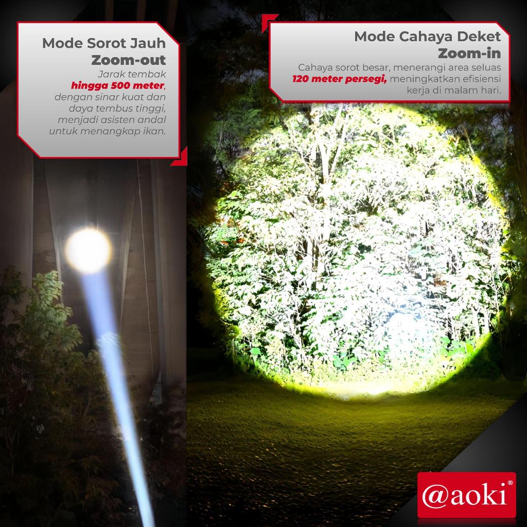 AOKI Lampu Kepala LED IRONEDGE DESIGN, Cahaya Kuat Jarak Jauh, Zoom Fokus & Sinar Luas, Headlamp USB Rechargeable untuk Outdoor, Camping, Memancing, Darurat