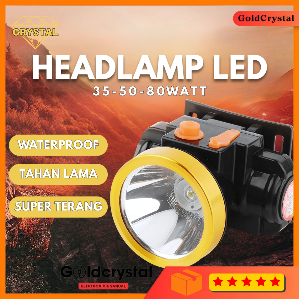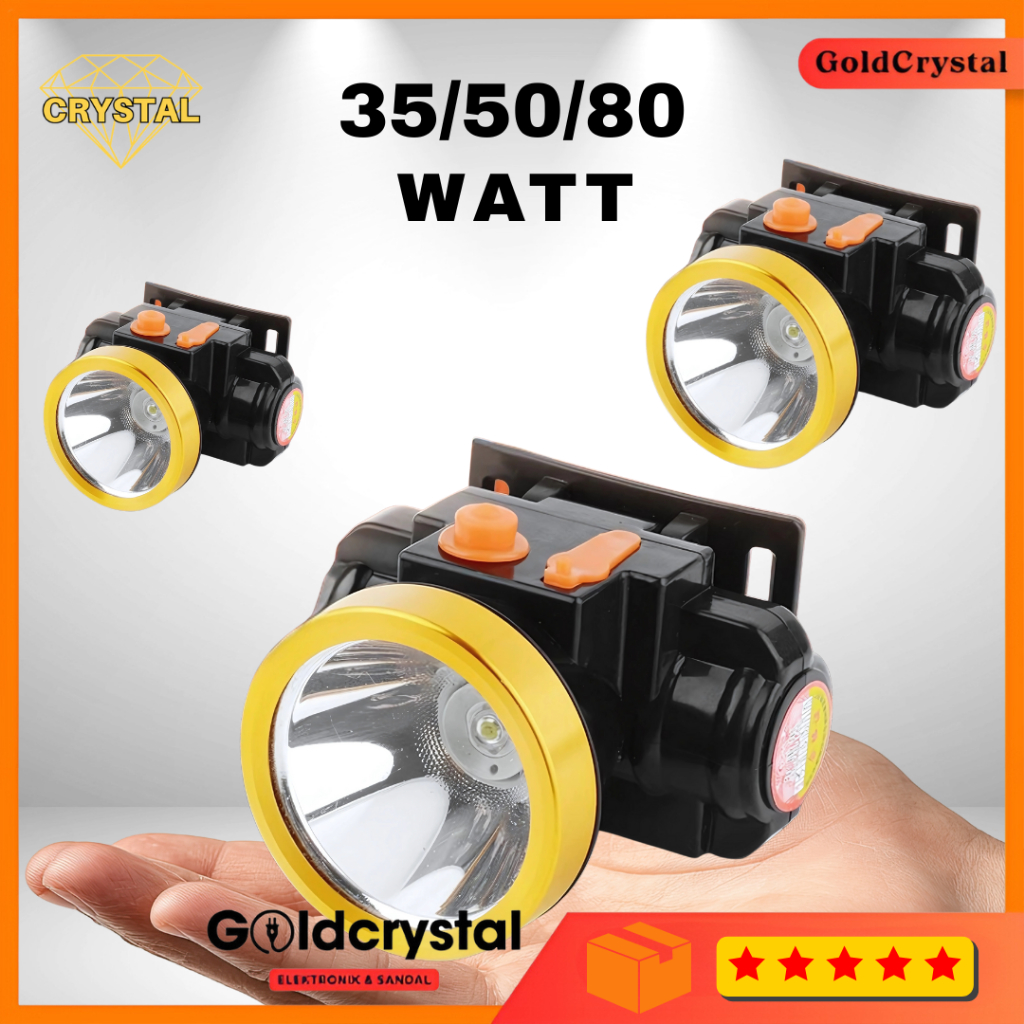 Senter Kepala LED 30w/35w50w/80w Headlamp Battery Lithium Lampu Gunung Camping Hiking Super Terang