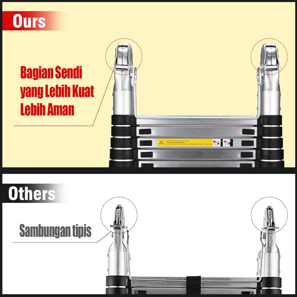 BOWEITI Tangga Lipat Aluminium Teleskopik Double Telescopic Ladder 4.4M/5M/5.6M/6.4M/8M