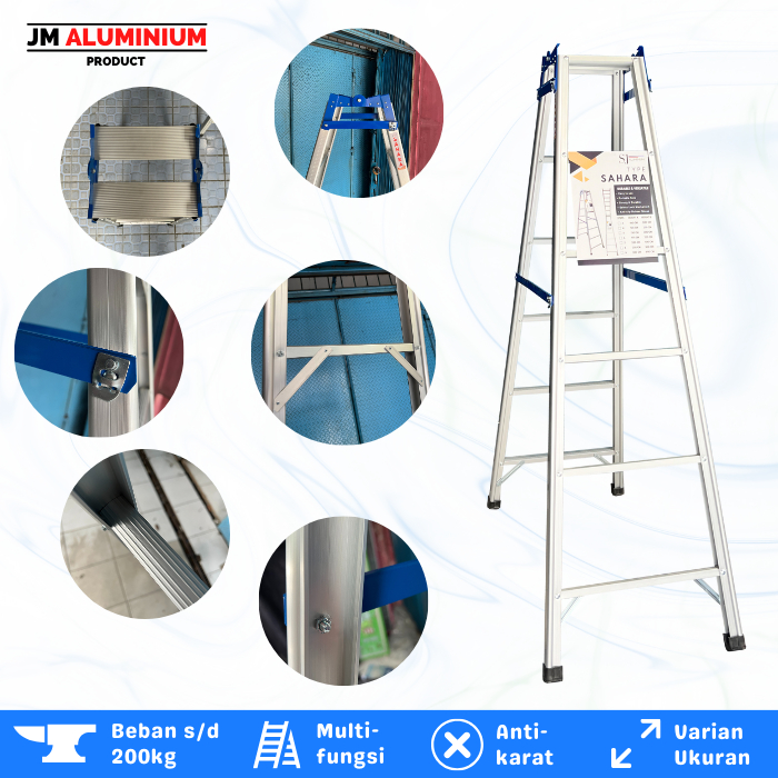 [KHUSUS INSTANT] - Tangga Lipat Aluminium Ukuran 1 - 2 Meter Tipe Sahara Biru | Tebal 1,25 MM | Aluminium Top Quality | KUAT KOKOH + ANTI KARAT