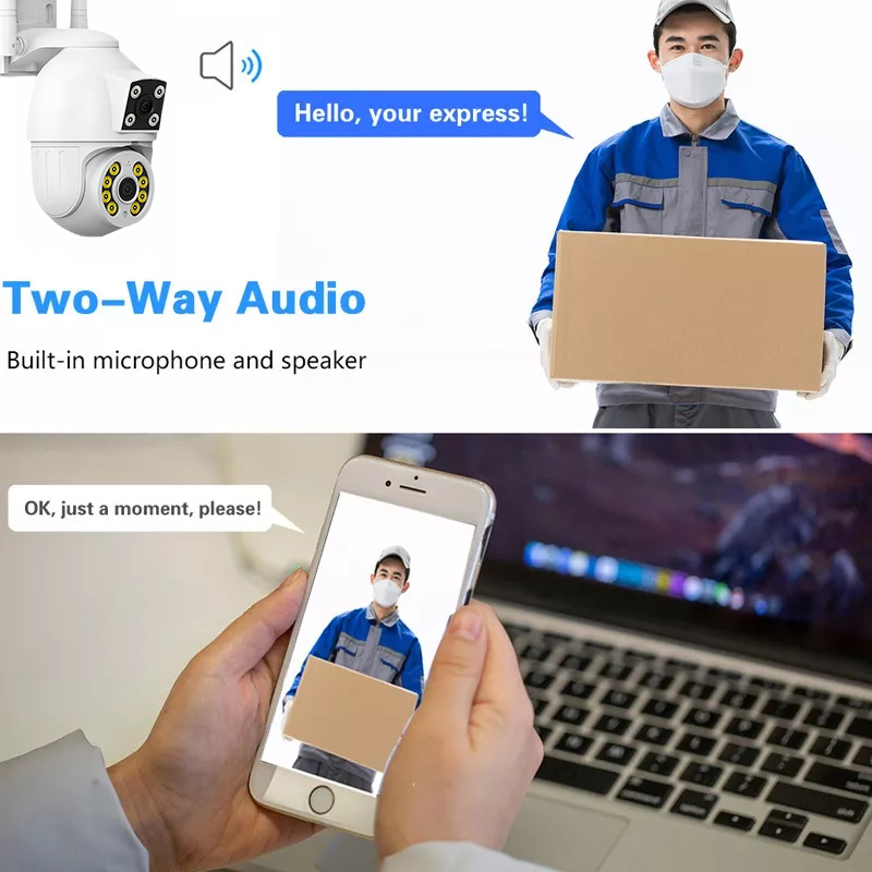V380 Pro Dual Lens Outdoor CCTV Smart Wifi HD 8MP Full View Night Vision Audio Dua Arah IP Kamera