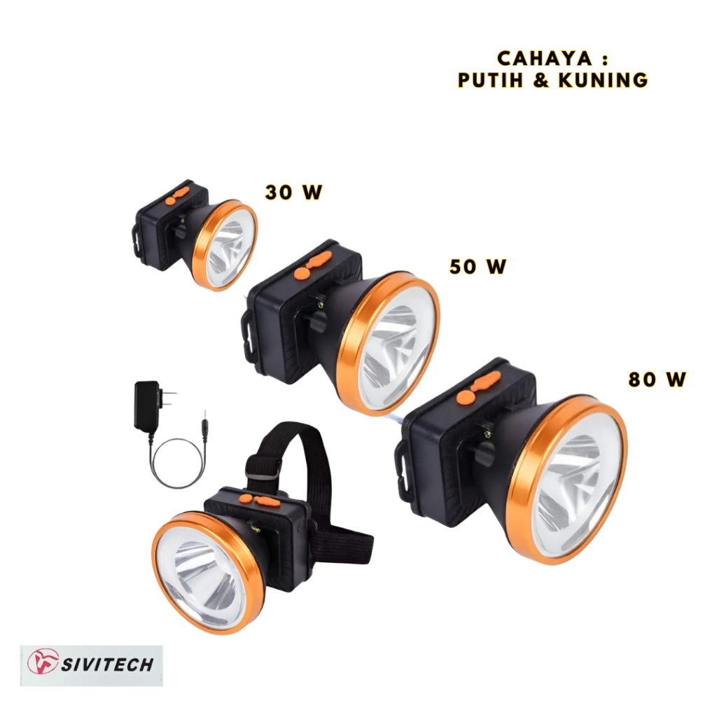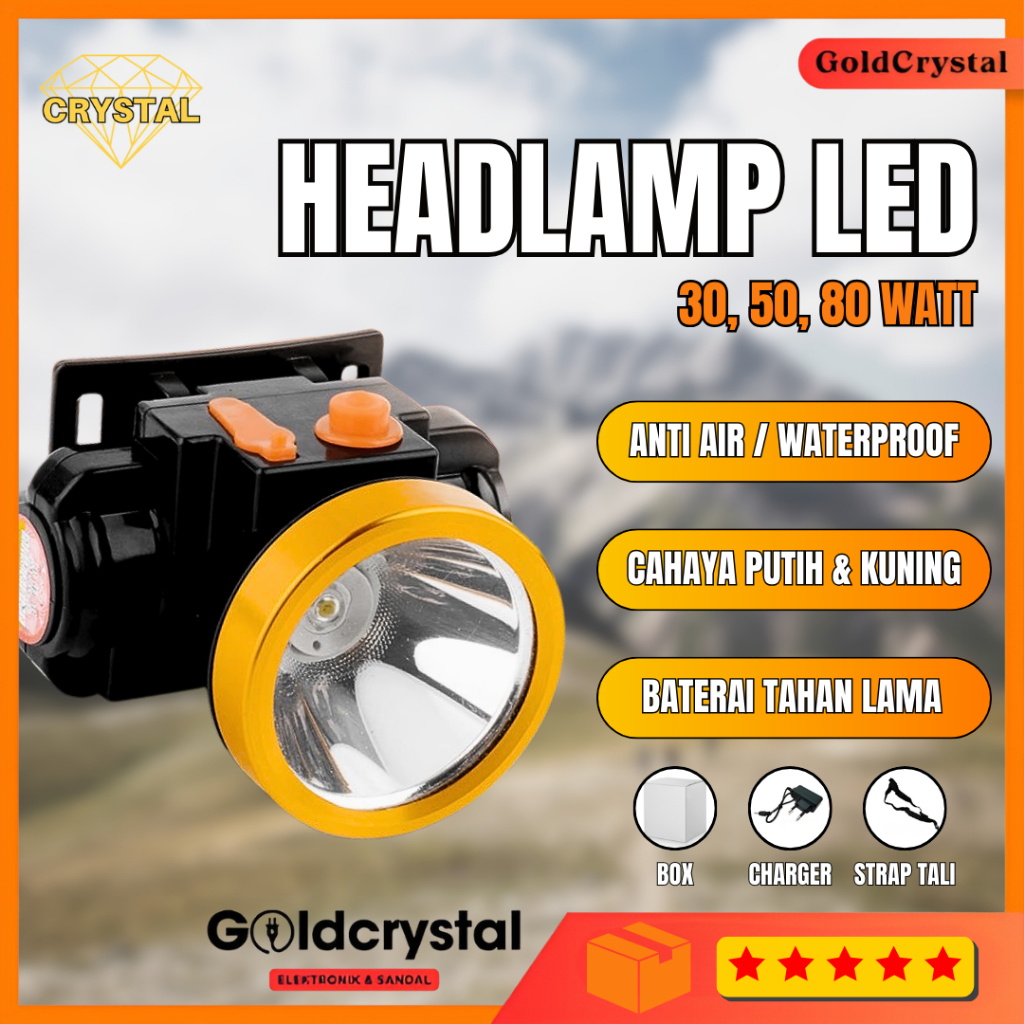 Lampu Senter Kepala LED 35W/50W/80W Headlamp Battery Lithium