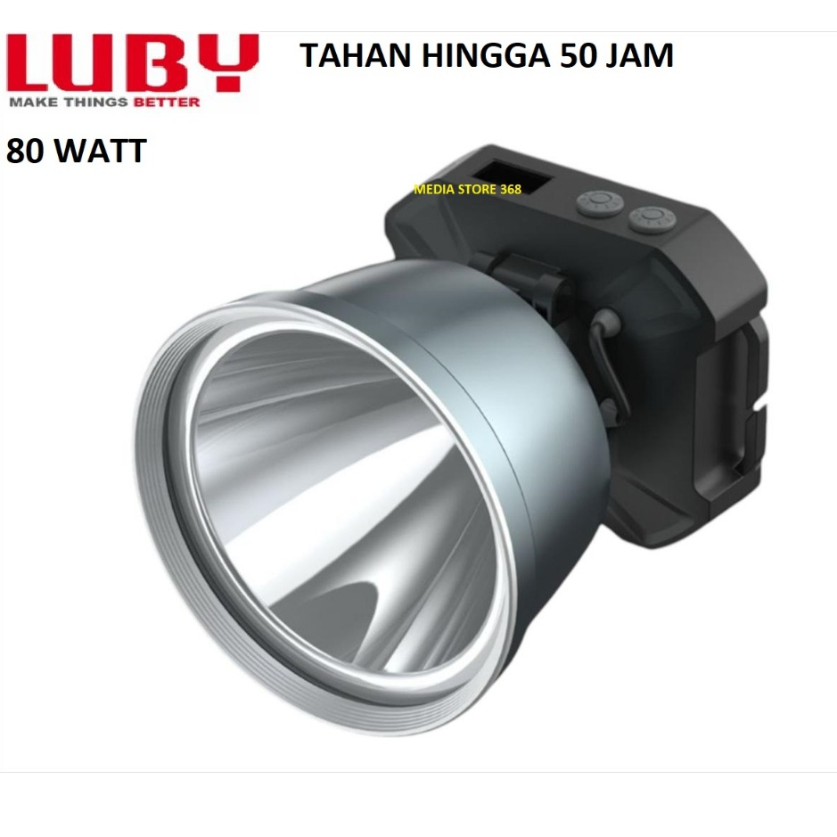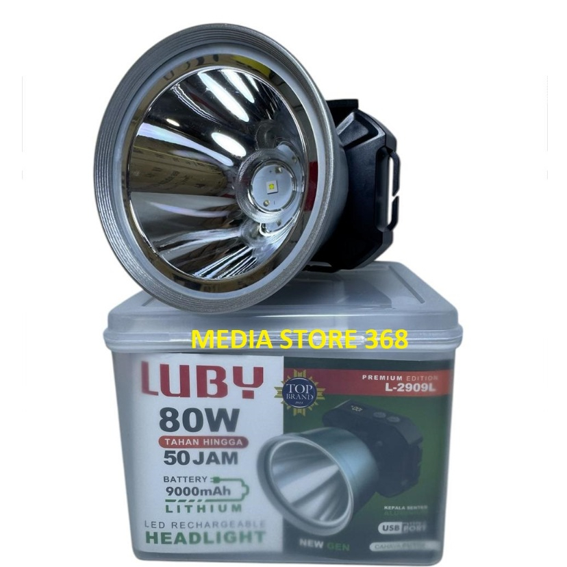 Senter Kepala LED 80W Luby L-2909L dengan Indikator Display, 9.000mAh Waterproof dan Rechargeable