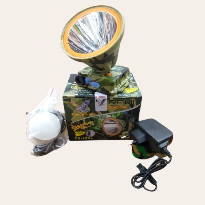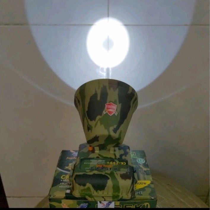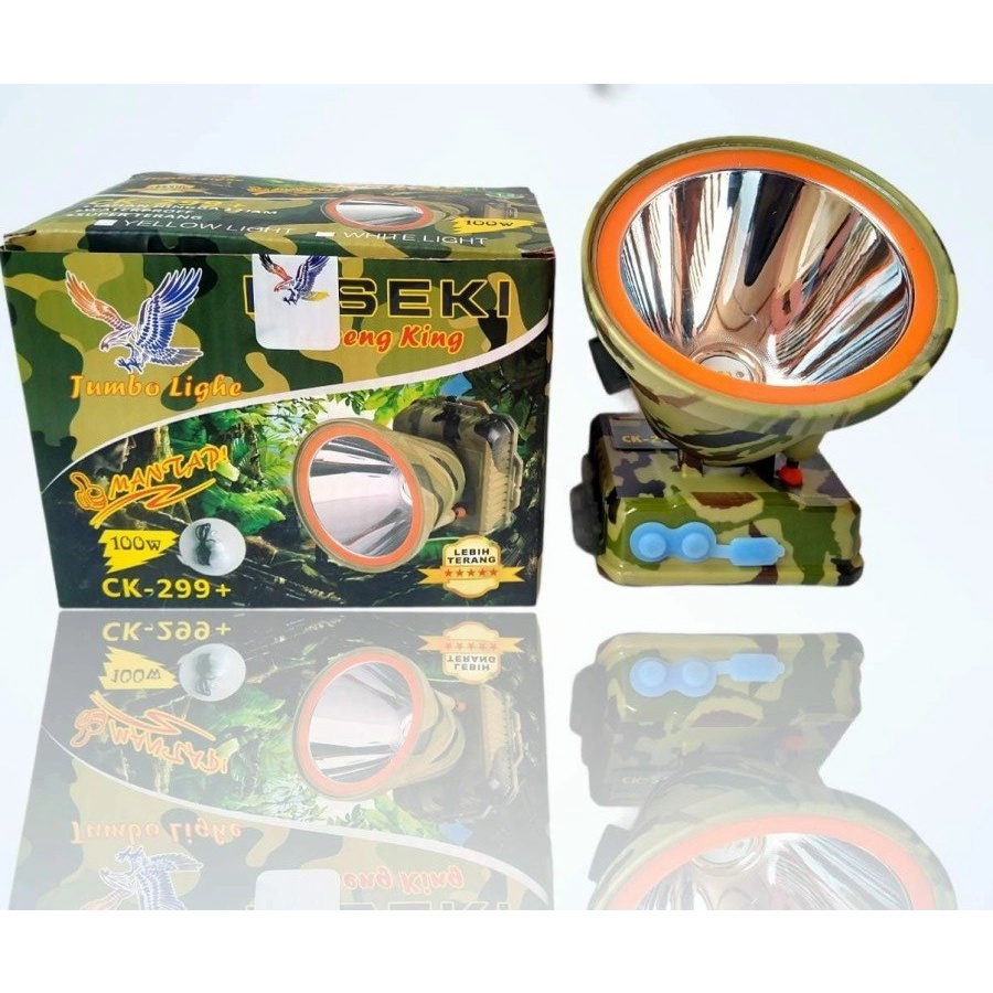 Senter Kepala LED Headlamp Kiseki 100 Watt Type CK 299+ Army Loreng Cahaya Putih Super Terang Baterai 5000mAh Tahan Hingga 12 Jam Bonus Bohlamp Lampu Headlamp Termurah