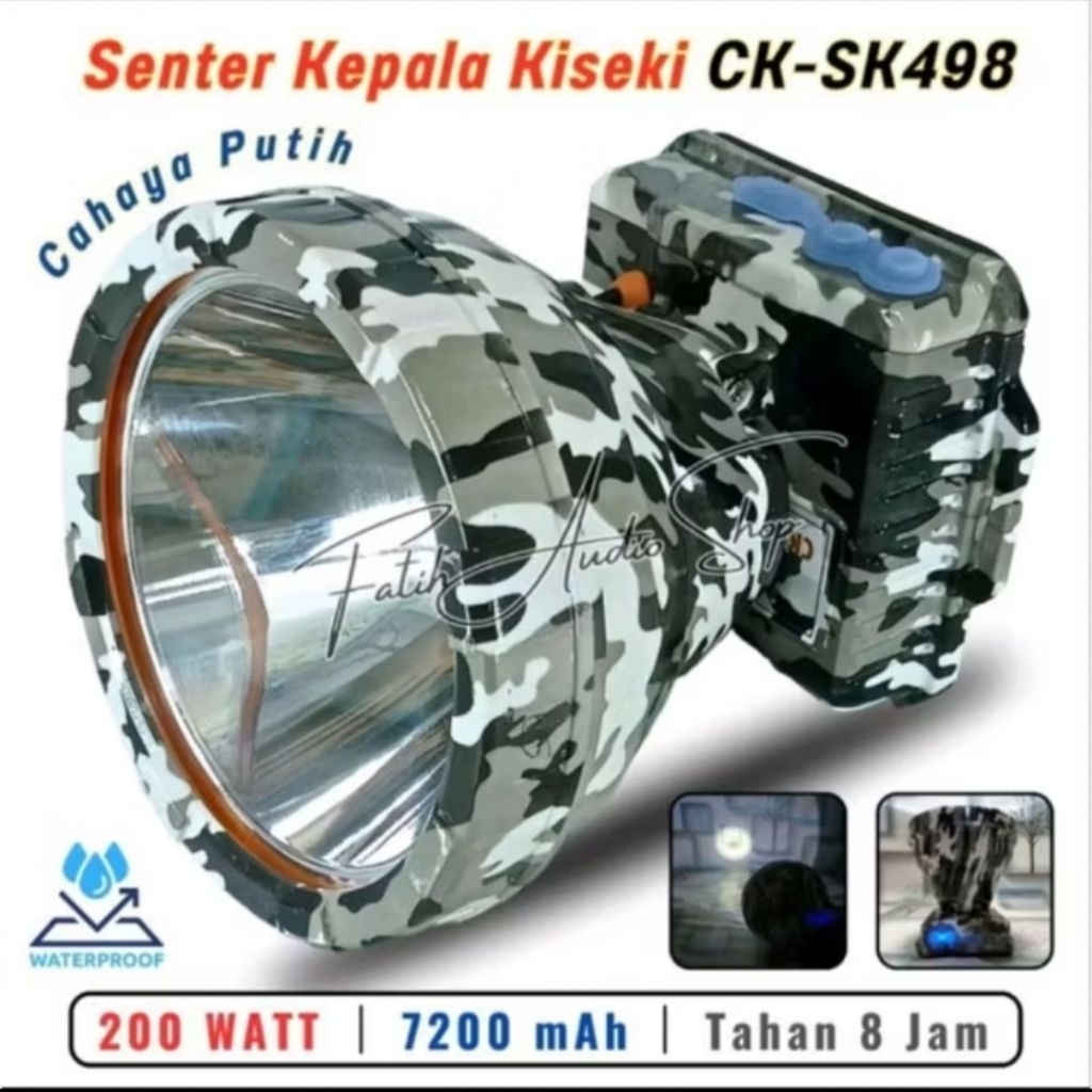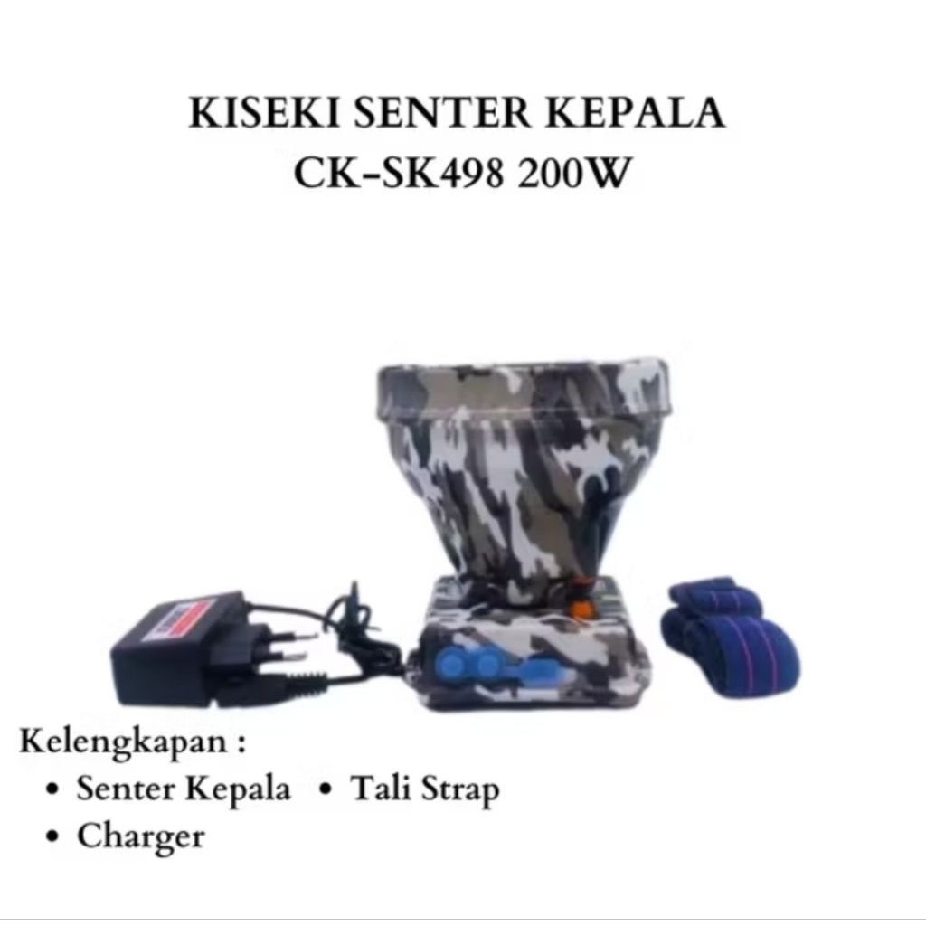 kiseki ck-sk498 senter kepala 200watt jumbo loreng king cahaya putih waterproof