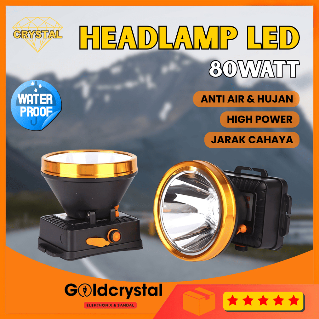 Senter Kepala LED 80 WATT Headlamp Battery Lithium Lampu Gunung Camping Hiking Super Terang
