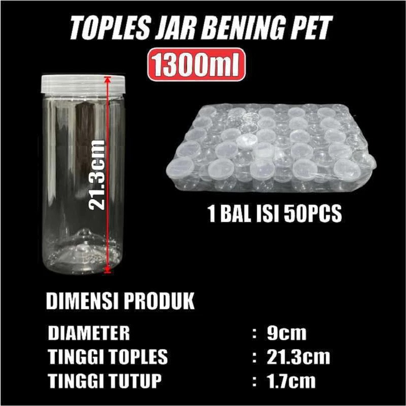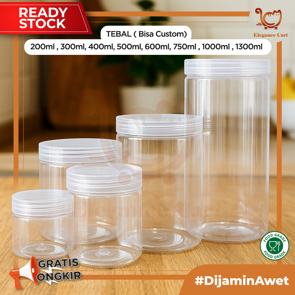 Toples Plastik Tebal 300ml 400ml 500ml 750ml 1000ml 1300ml Jar Silinder Bening Pet Toples Kue kering