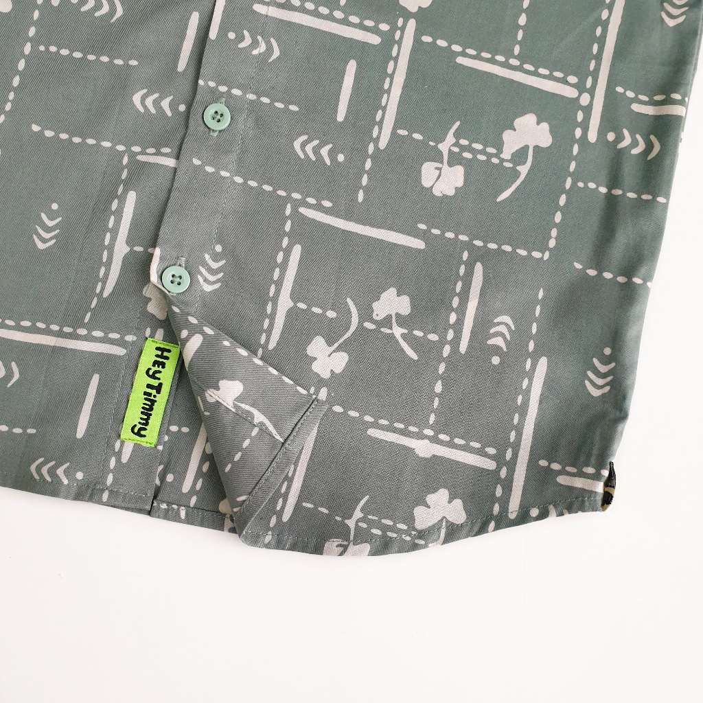 HEYTIMMY - Kemeja Batik Cap Anak Laki Laki Lengan Pendek Katun / Sage Green Hijau / Umur 3 4 5 6 8 10 12 14 tahun