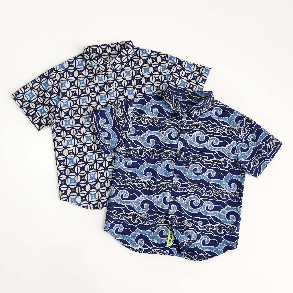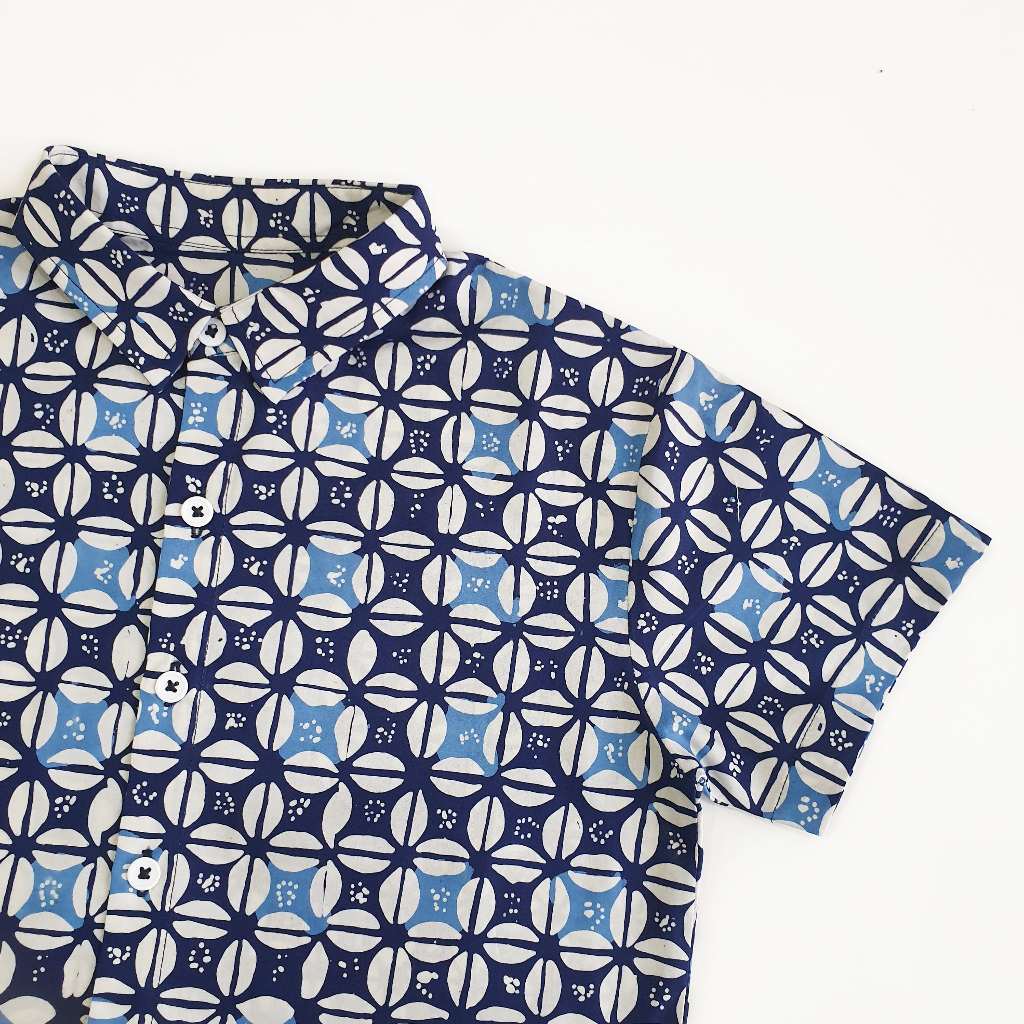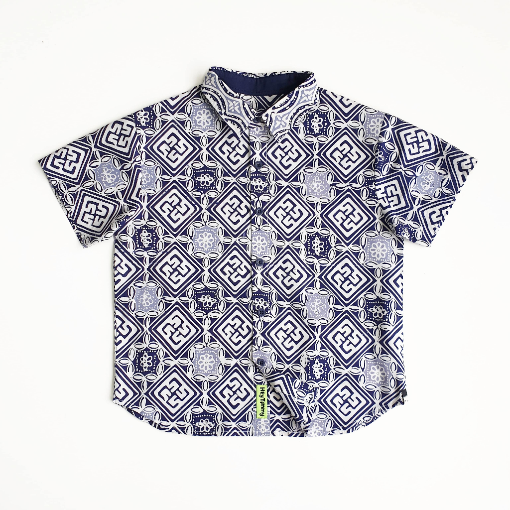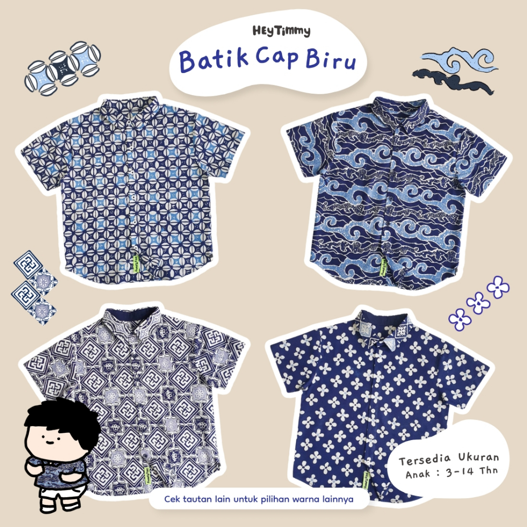 HEYTIMMY - Kemeja Batik Cap Anak Laki Laki Lengan Pendek Katun / Biru Blue Navy Denim / Umur 3 4 5 6 8 10 12 14 tahun