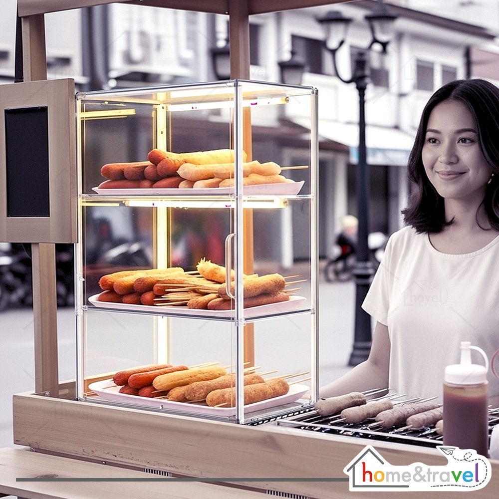 HOVELSHOP Rak Akrilik Tempat Jualan Gorengan Jajanan Makanan Bazzar Box Display 2 3 Susun Anti Pecah Portable