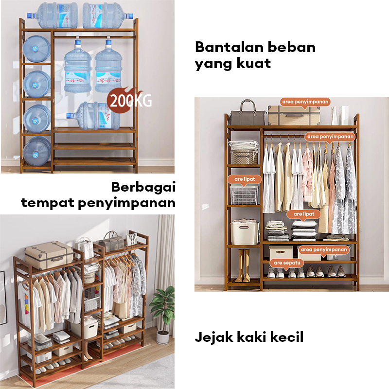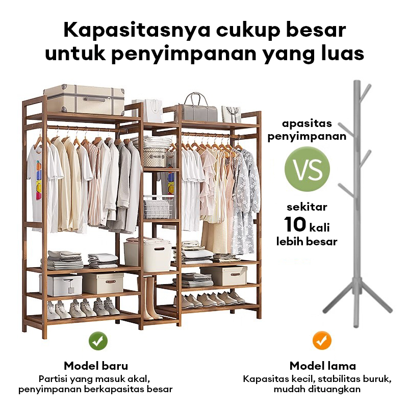 Stand hanger kayu/Rak mantel lengkap/Berdiri Gantungan Baju/Penyimpanan berlapis/Hemat r