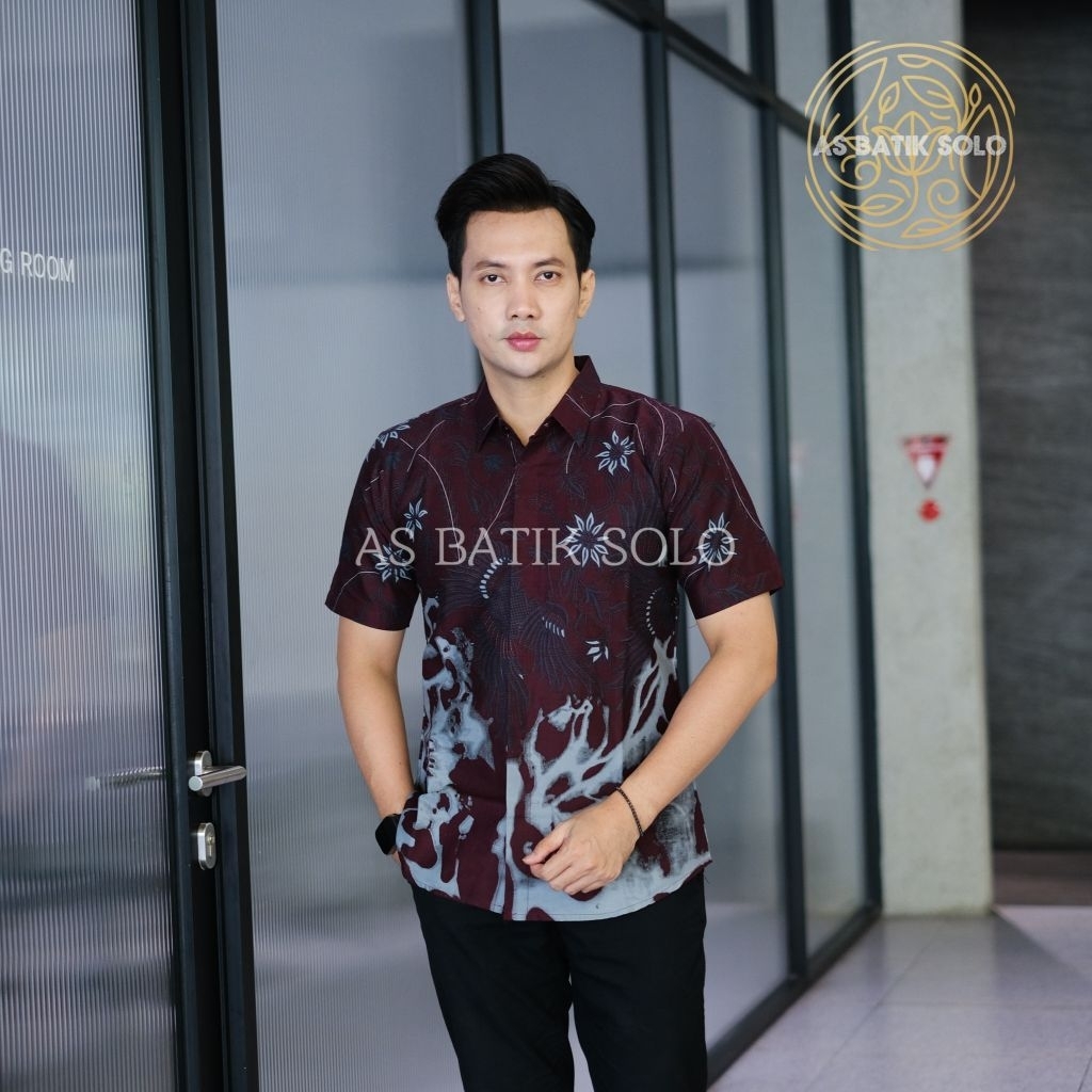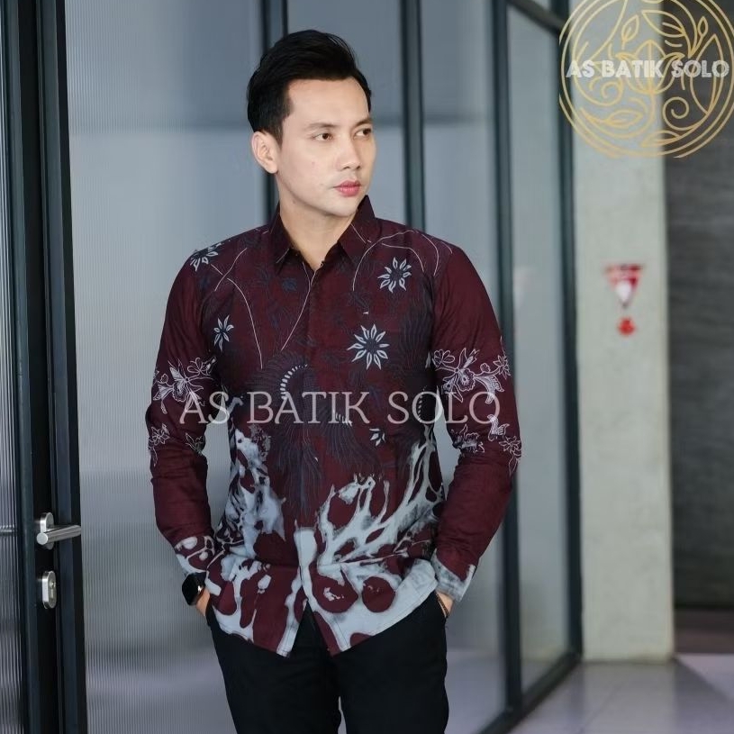 Batik pria Arya kamandanu Merah Maroon original Slimfit,kemeja batik pria lengan panjang pendek bahan katun premium by A