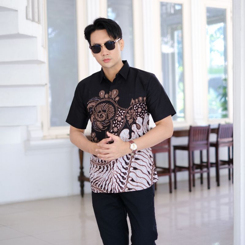 Motif Rangkong Hitam Pendek Kemeja Batik Pria Slimfit Lengan Pendek Baju Batik Pria Hem Batik Pria Jumbo