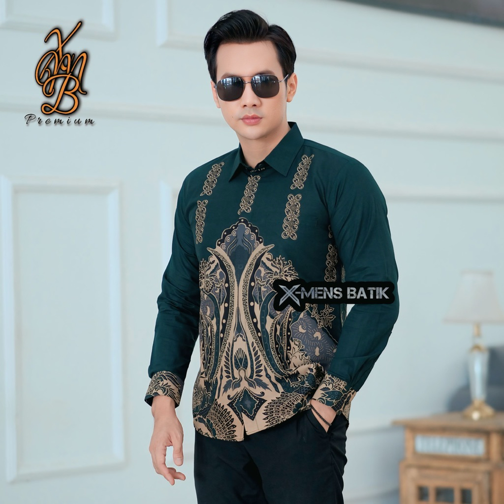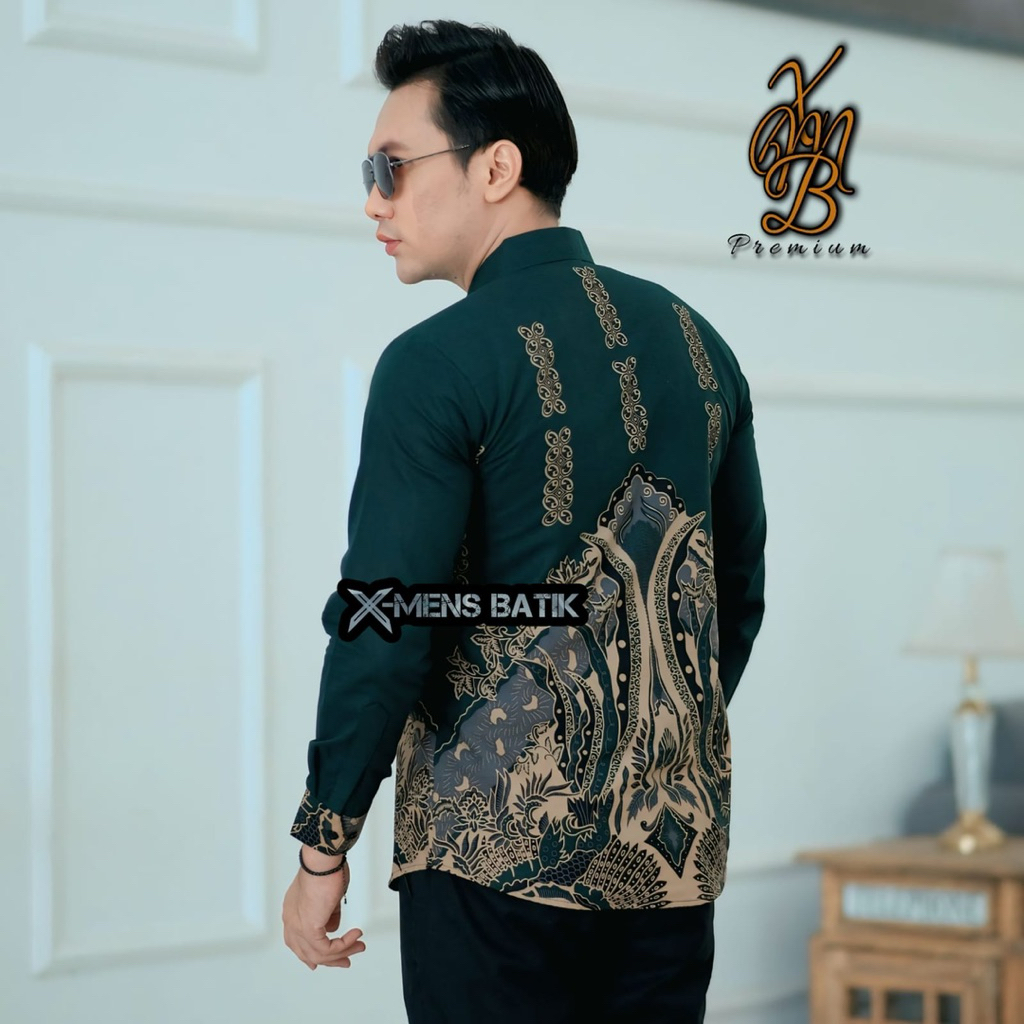 Kemeja batik pria solo slimfit katun premium lapis puring ERRO motif GAYANA EMERALD GREEN