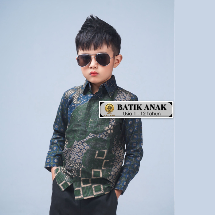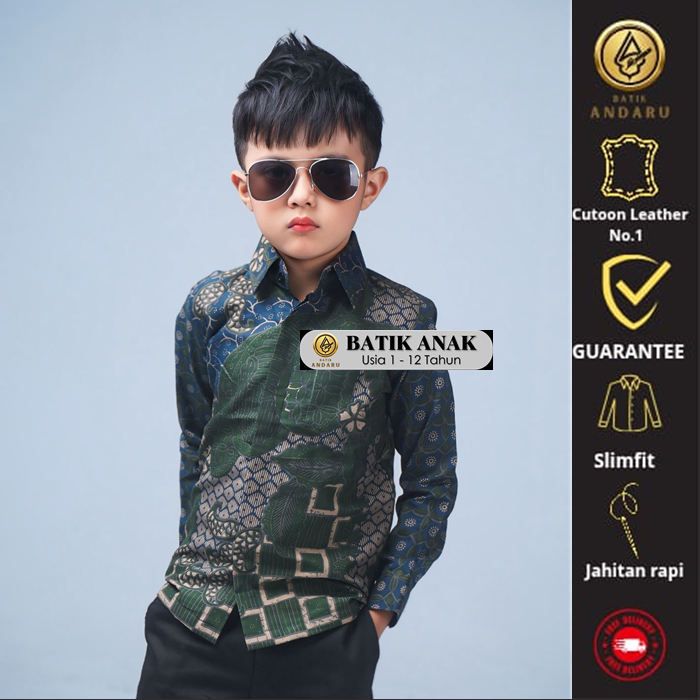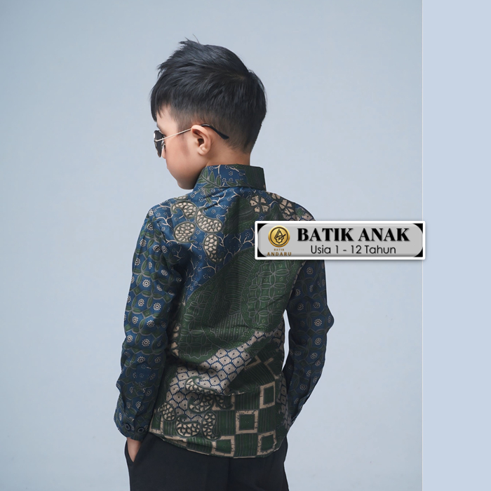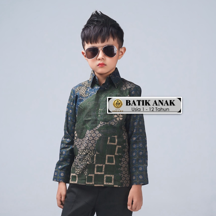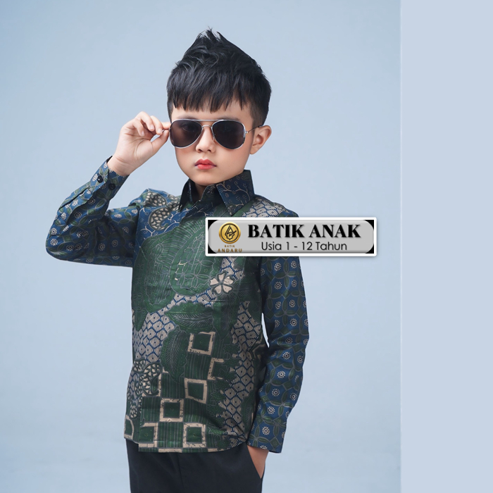 Batik Andaru Kids Motif Ramayana Baju Batik Anak Anak Laki Laki Slimfit Lengan Panjang Umur 3 - 12 Tahun Warna Hijau