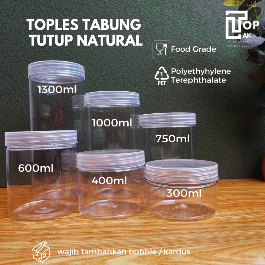 Toples Plastik Tabung Bening 300ml 400ml 600ml 750ml 1000ml 1300ml Jar Silinder Toples Kue SETANDAR