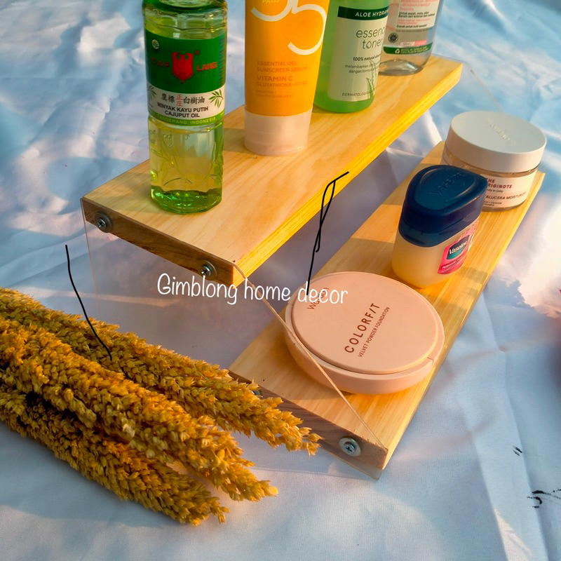 RAK KOSMETIK | RAK SUSUN KAYU RAK KOMBINASI AKRILIK