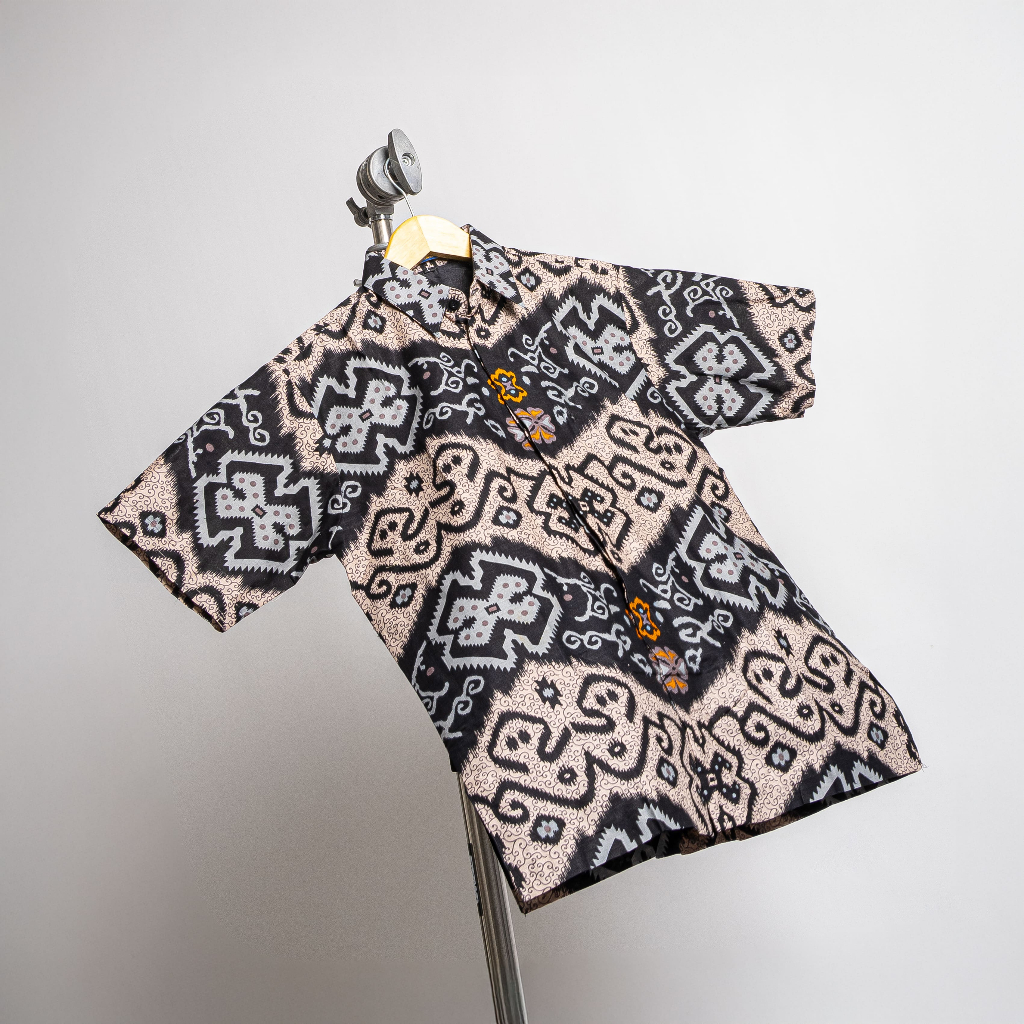 kemeja batik lengan panjang pria lapis furing motif tenun sumba bahan katun modern etnik warna hitam