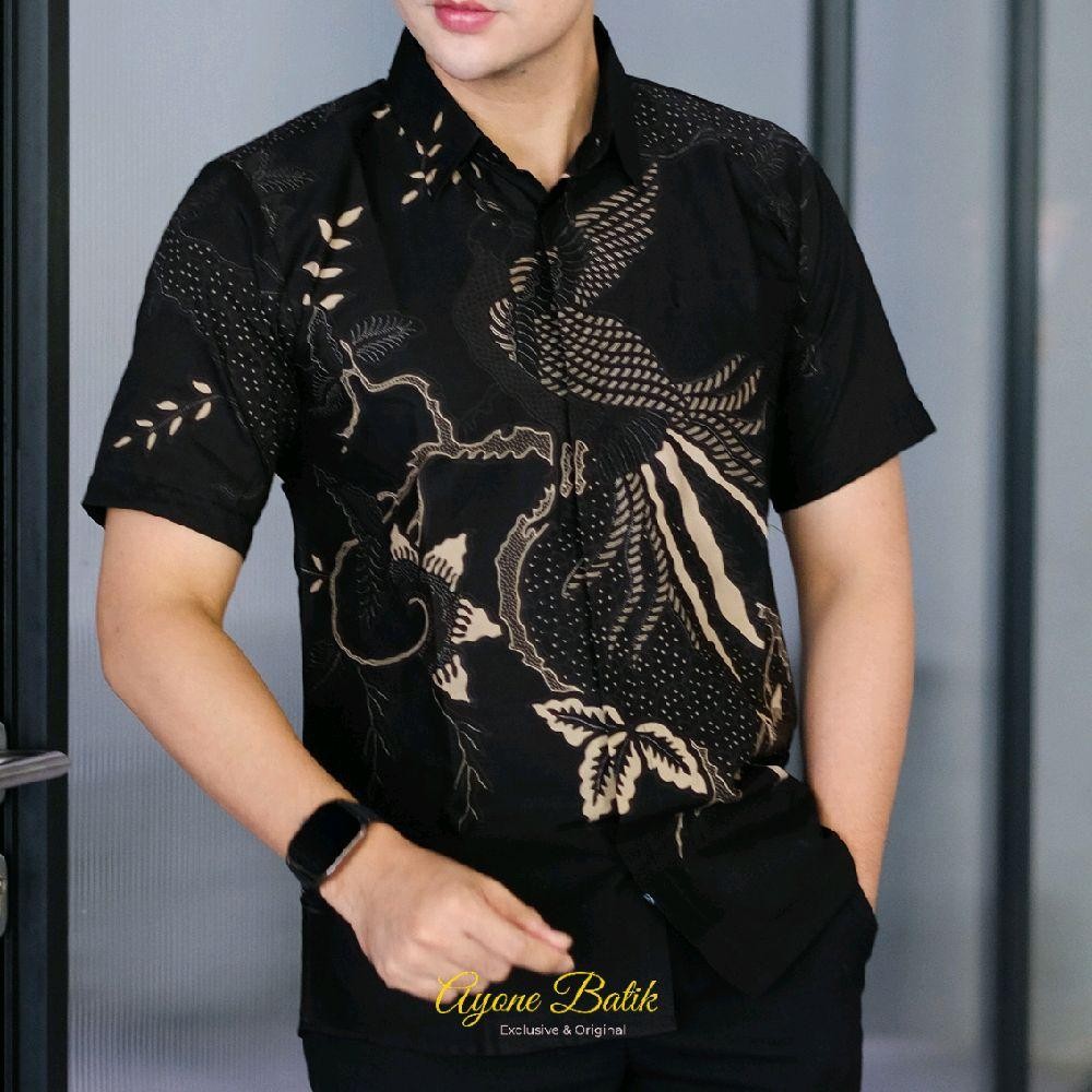 AyoneBatik Hem Batik Pria Terbaru Lengan Pendek Panjang Motif EMPRIT HITAM Batik Cowok Lengan Pendek Kekinian Warna Hita