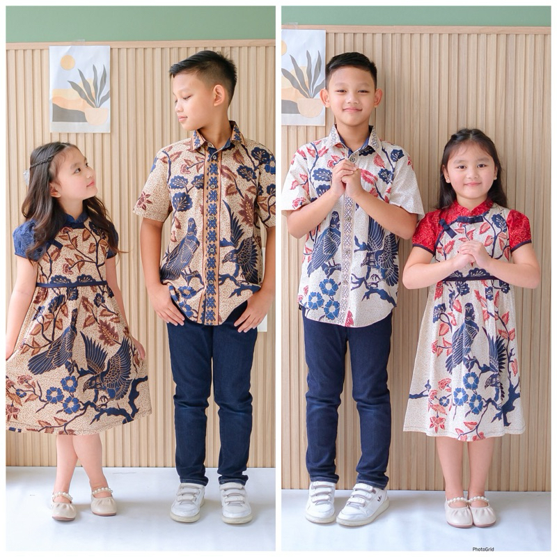 Baju batik anak modern / Dress batik anak cewek / Kemeja batik anak cowok dress imlek anak RED UNITY