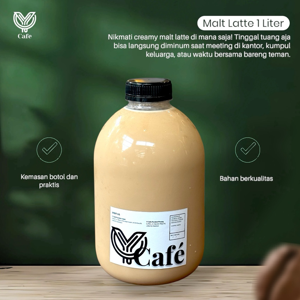 Cafe Malt Latte 1 Liter - Minuman Kan Kopi Susu Malt Latte / Cafe Latte - Kopi Kan Botol Praktis Ready To Drink by Y Caf
