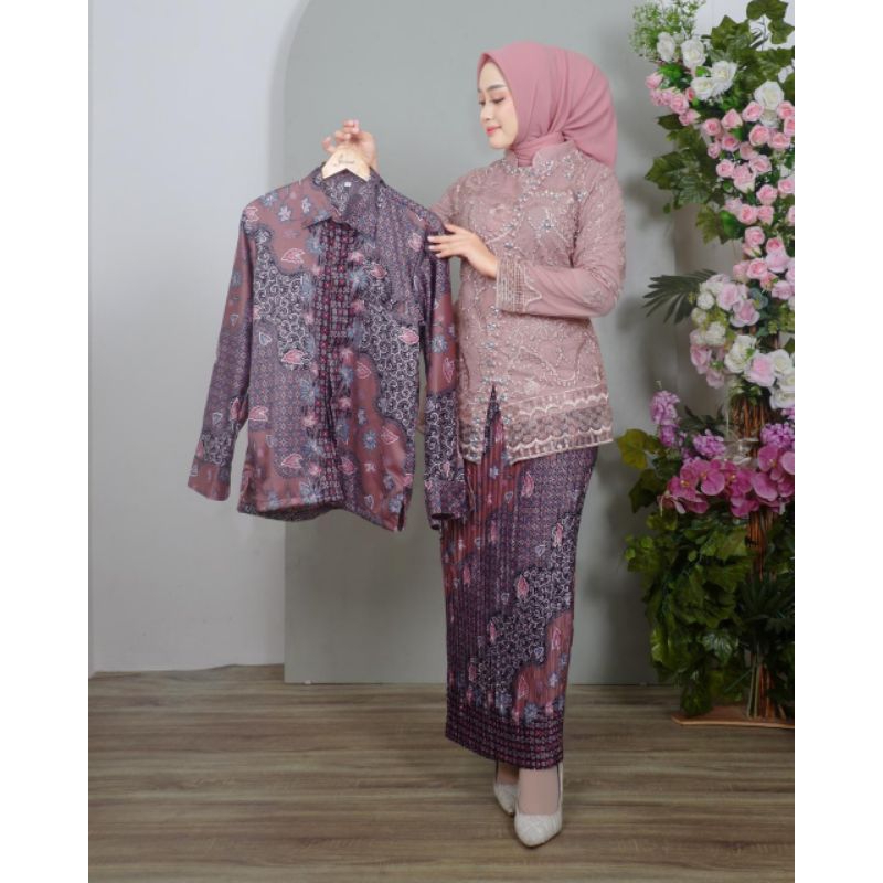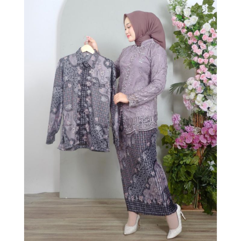Couple Kebaya Remaja Sarita Tulle Modern / Kebaya Lamaran / Hem Batik Pria / Kebaya Pesta