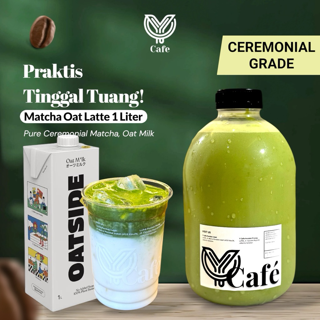 Matcha Oat Latte Ceremonial Grade 1 Liter - Kan Minuman Botol Matcha Oat Latte Praktis Tinggal Tuang by Y Cafe