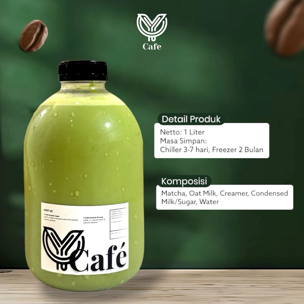 Matcha Oat Latte Ceremonial Grade 1 Liter - Kan Minuman Botol Matcha Oat Latte Praktis Tinggal Tuang by Y Cafe
