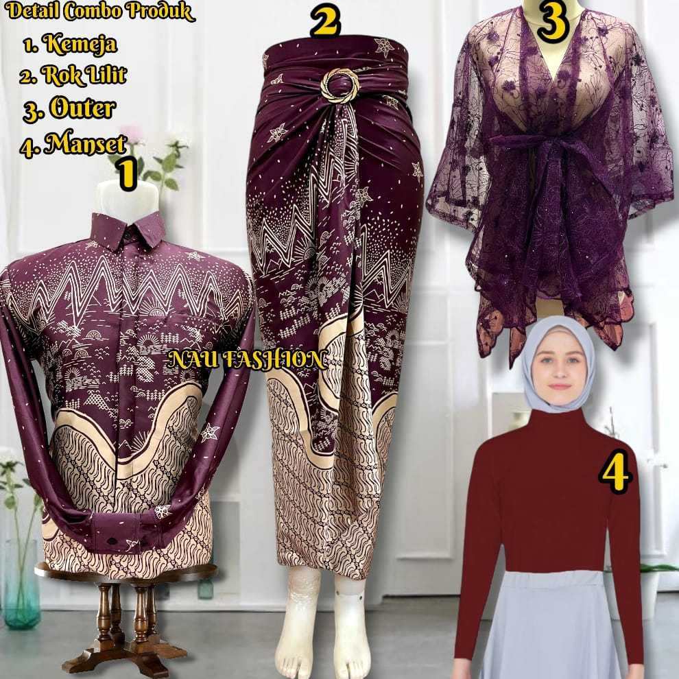 Baju Kemeja Batik Couple Rok Lilit Batik Kondangan include manset dan outer cardigan