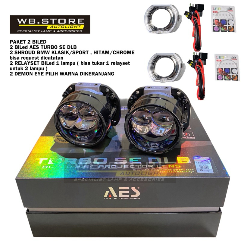 PAKET BILED AES TURBO SE DLB 75 watt 2.5 INCH DUAL LOW BEAM BLUE LENS DOBEL LASER AES TURBO SE DLB