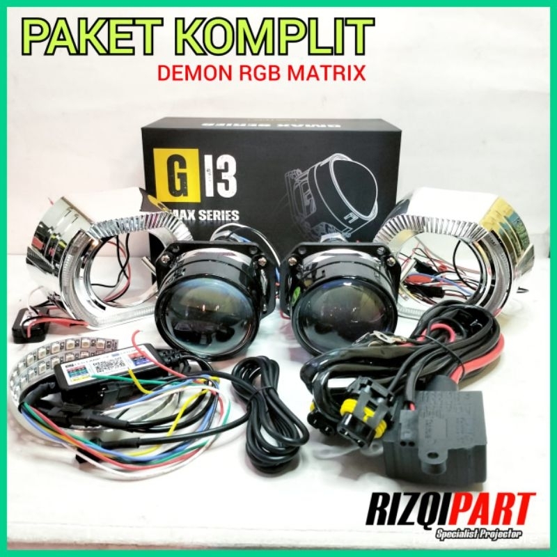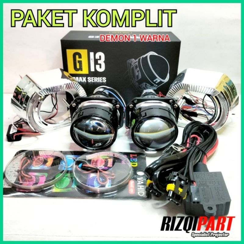 PAKET HEMAT KOMPLIT LAMPU UTAMA HEADLAMP BILED PROJIE AES V2 DAN VAHID G13 LENSA 2,5 INCH BLUE LENS SEPASANG