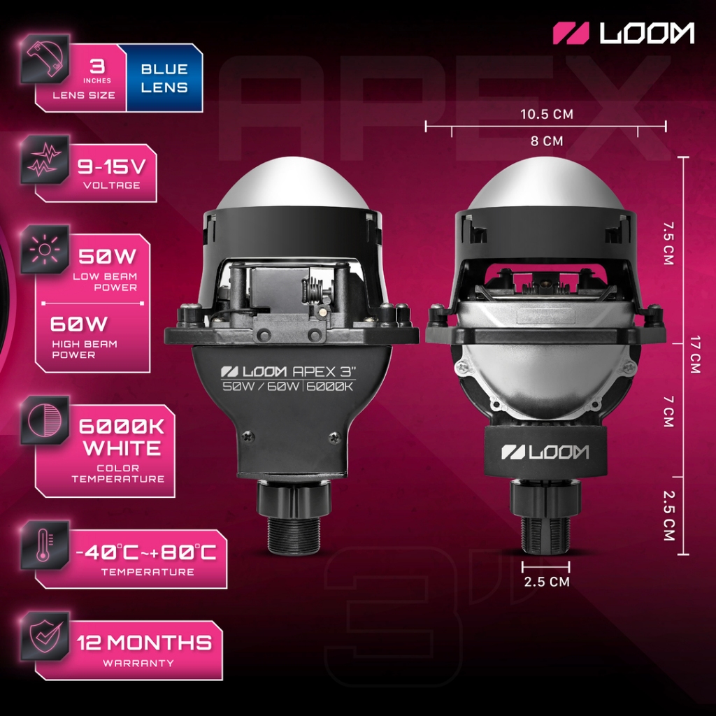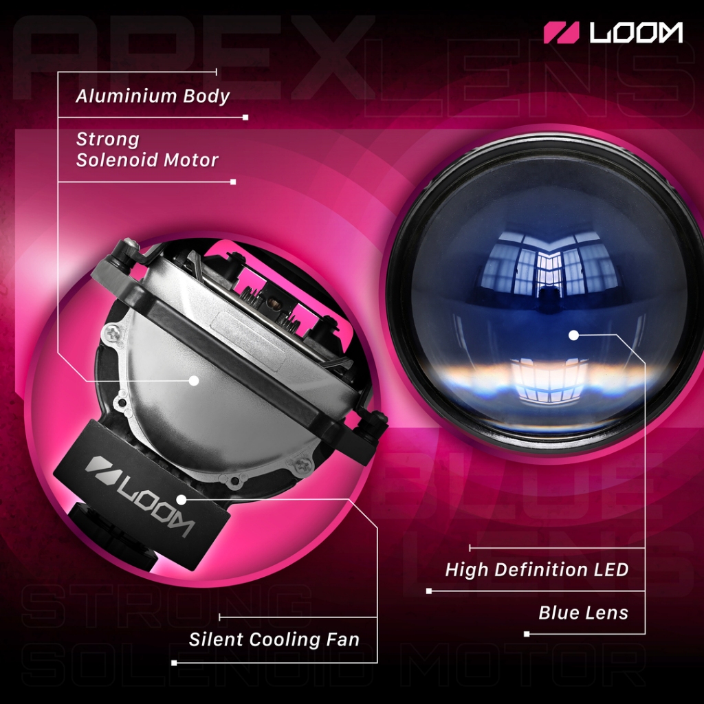 Loom Apex Plus 3” Biled Projector Lampu Blue Lens Projie 3 Inch