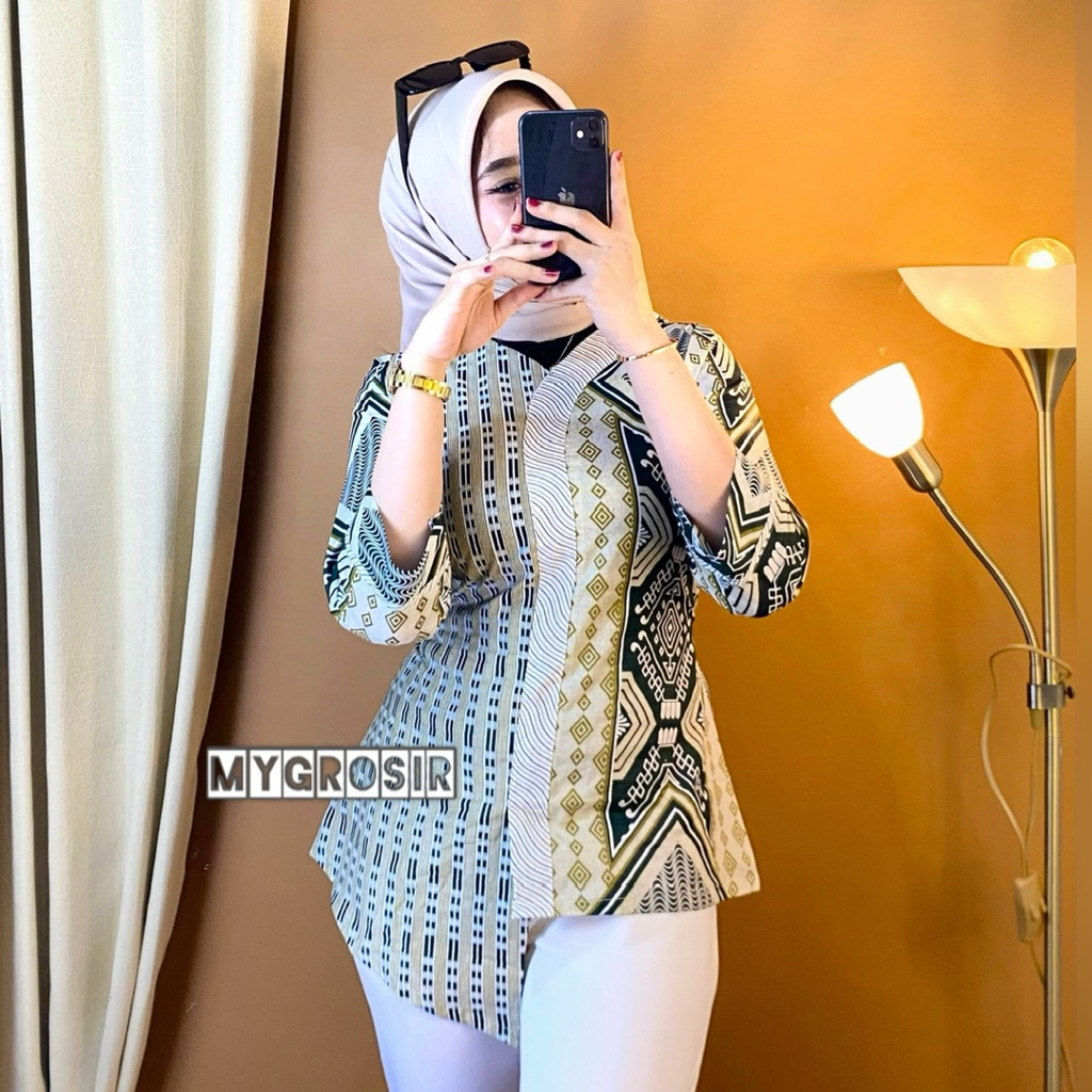 Blouse Batik Wanita Lengan Panjang – Atasan Batik Modern Premium Elegan Kekinian Kemeja Kombinasi Motif Elora choco