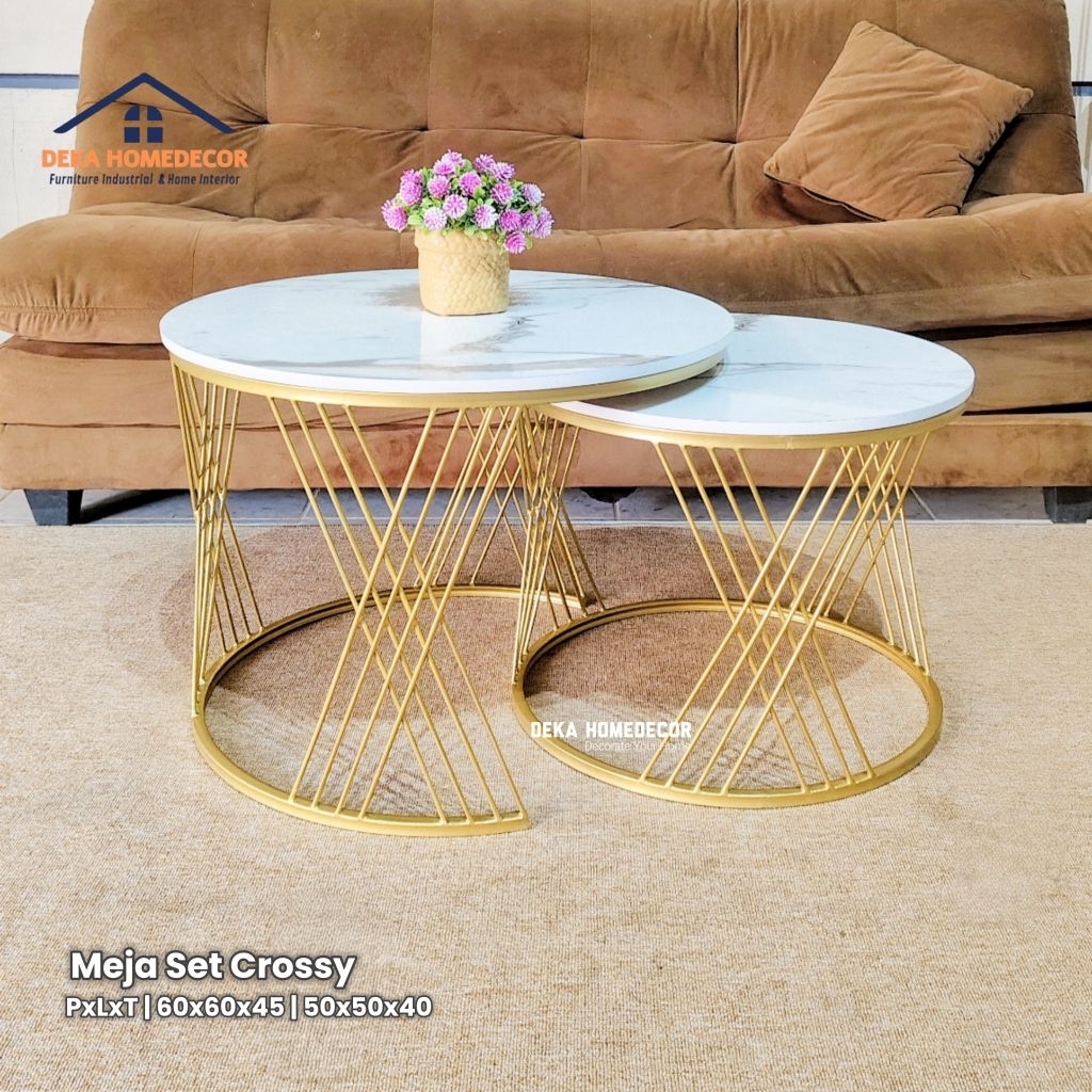 Meja Tamu Minimalis CROSSY / Meja Tamu Granit / Meja Bulat Aesthetic Modern / Furniture R Tamu