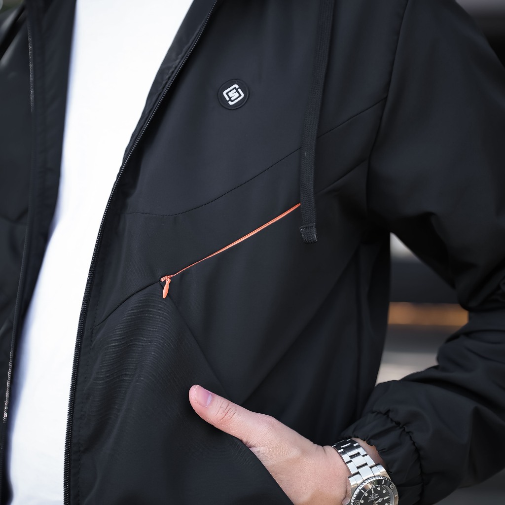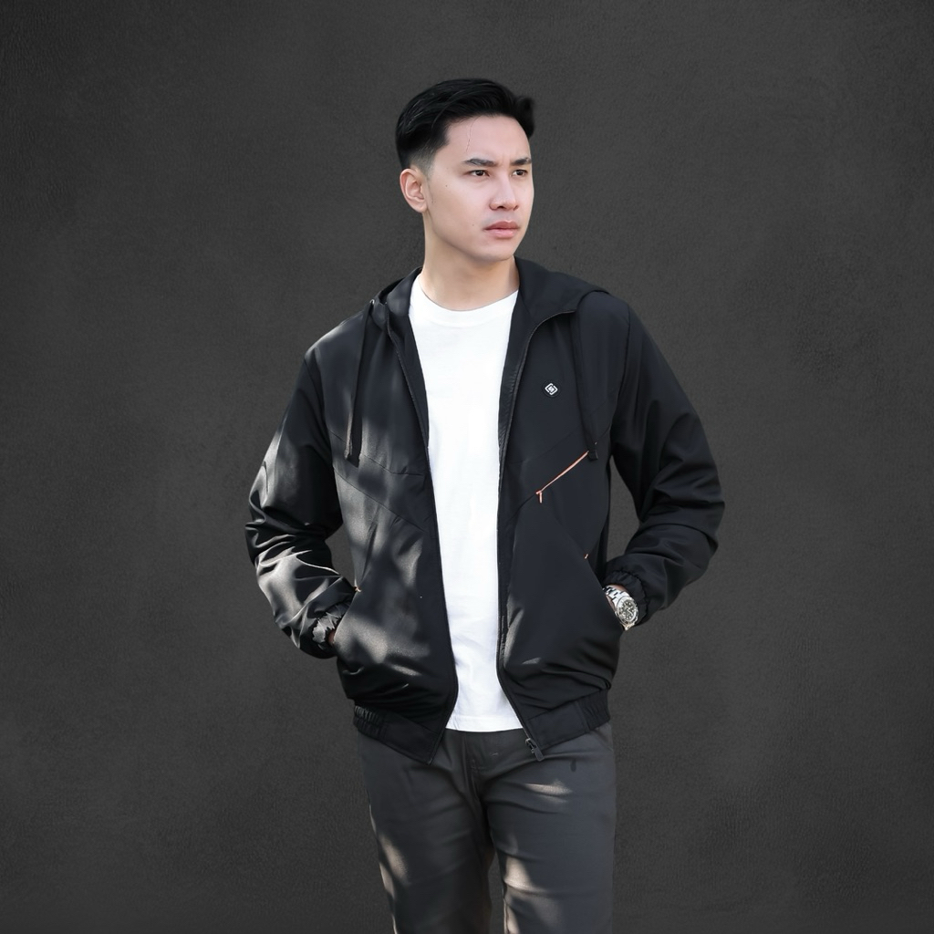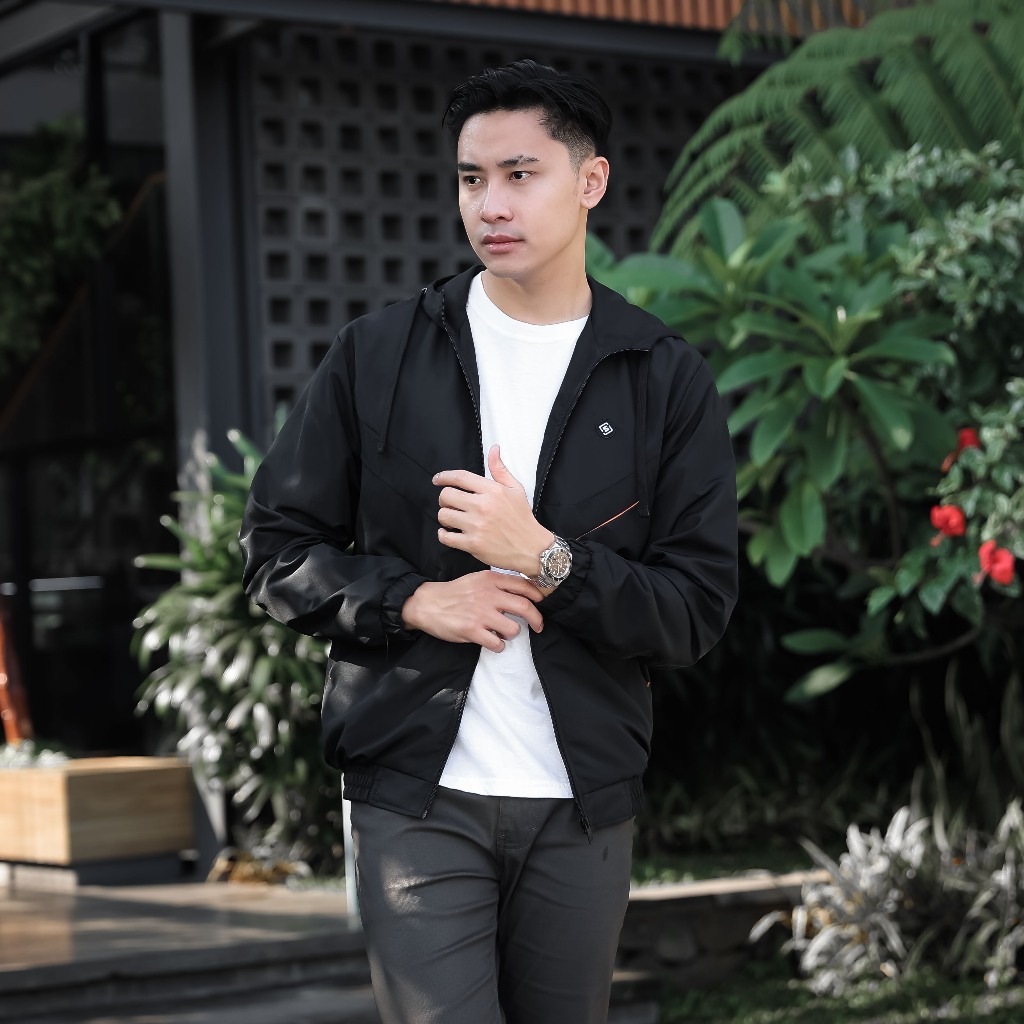 Jaket Pria Bomber Windbreaker Black Lazeo