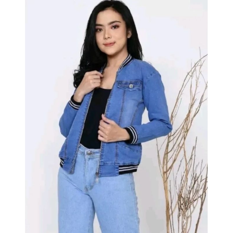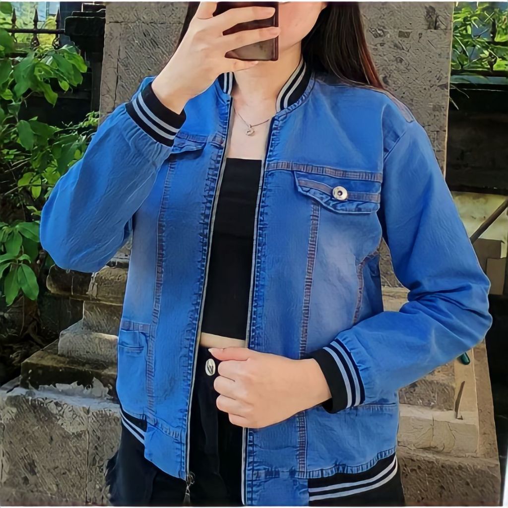 Jaket Bomber Jeans Wanita Korean Style Model Terbaru
