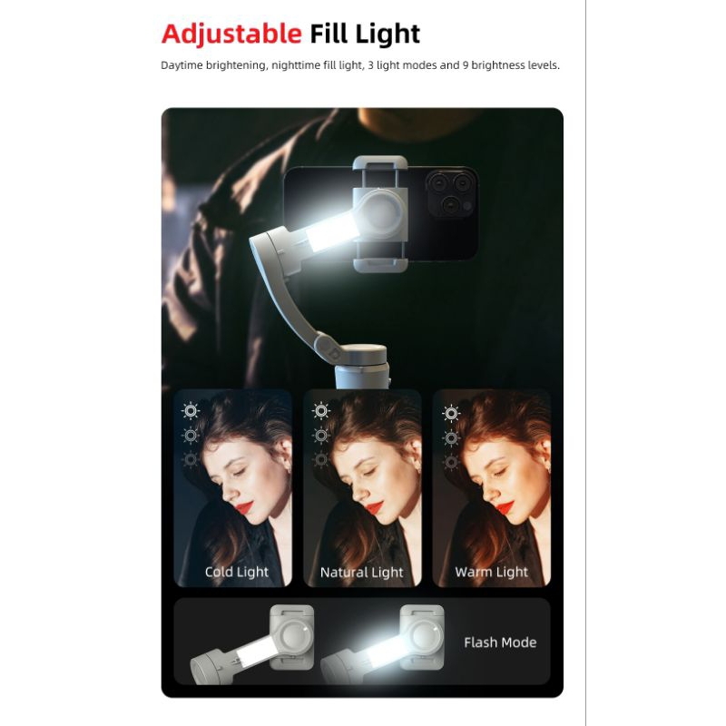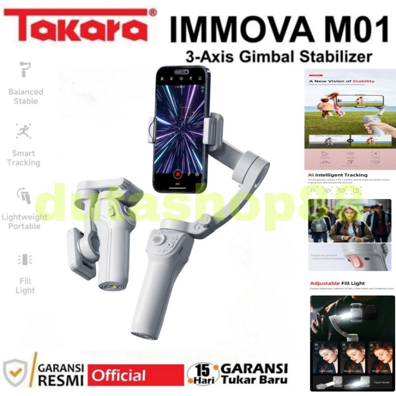 Takara IMMOVA M01 3-Aksis smart tracking gimbal stabilizer with LED fill light for smartphone